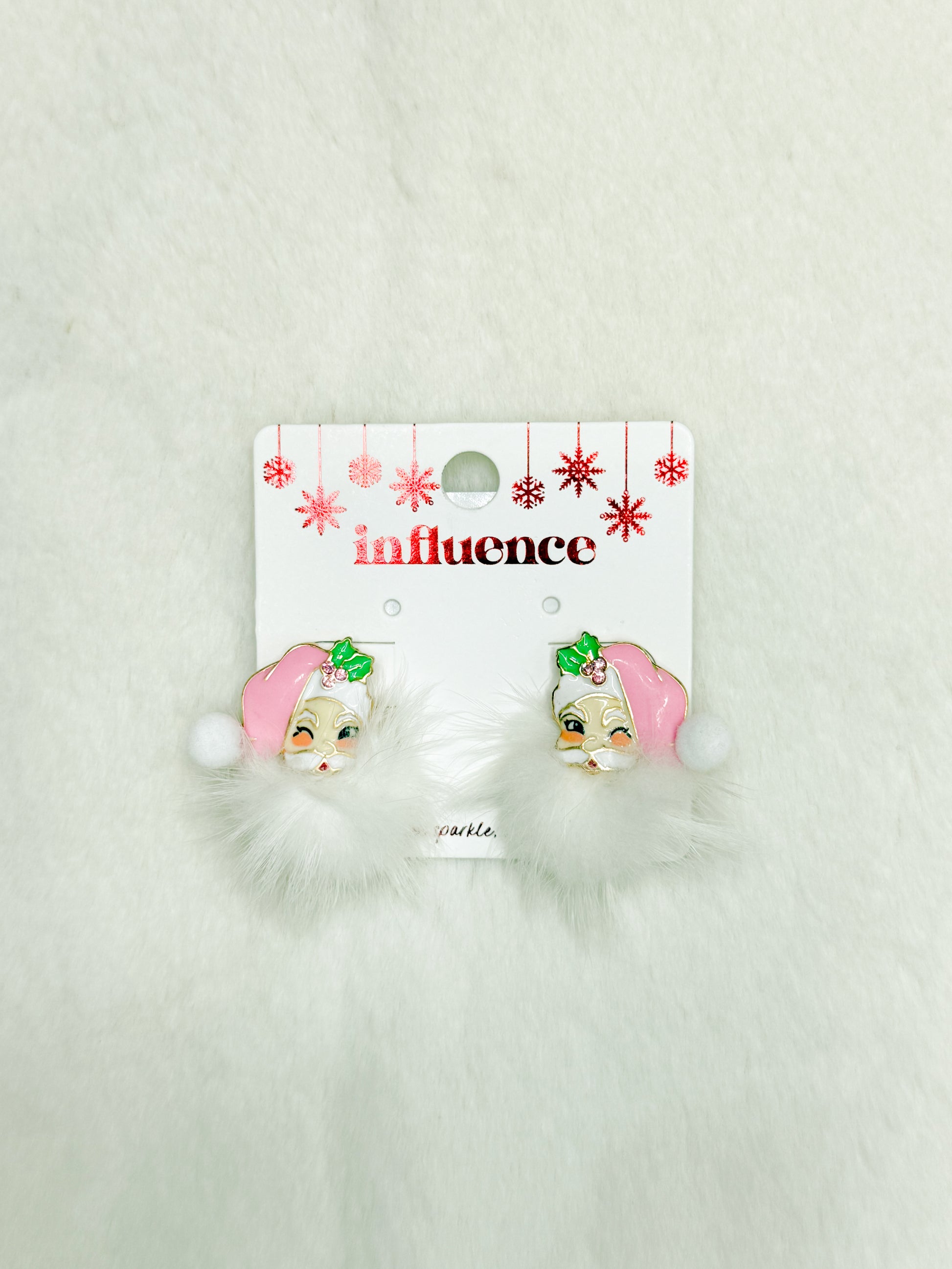 Flirty Pink Santa Christmas Studs