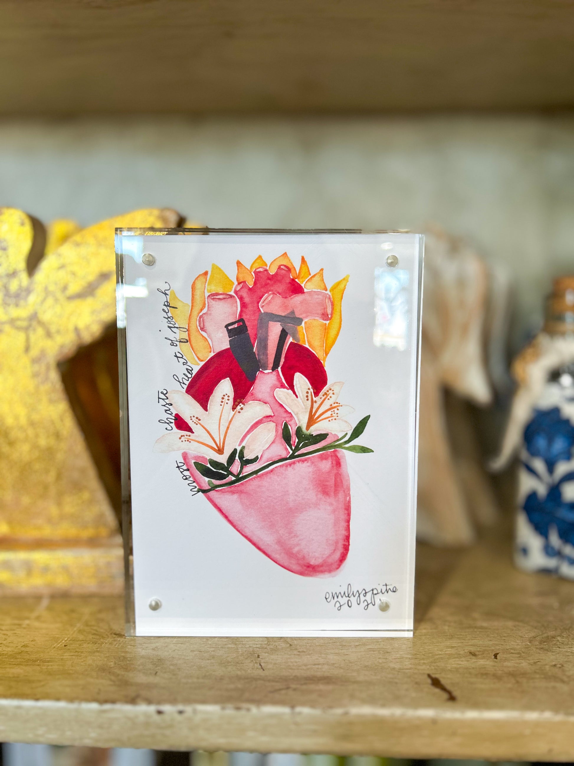 This 5x7 print features artwork by Emily S. Pitre depicting the Most Chaste Heart of Joseph, elegantly framed to enhance its refined aesthetic. Perfect for those who appreciate contemplative religious art, this piece brings a subtle yet profound sense of devotion and grace to any space. Ideal for display in home or office, it offers a timeless reminder of purity and protection.