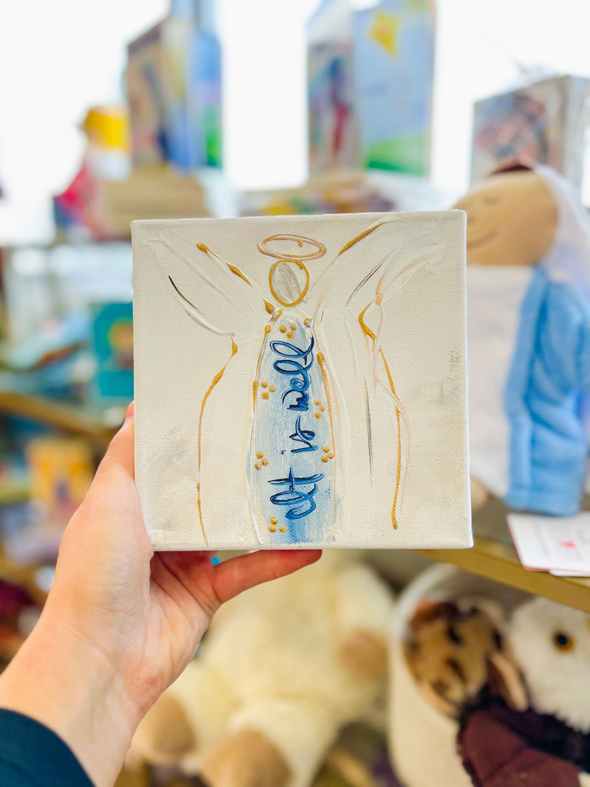 6x6 Blue and White Angel Canvas Art