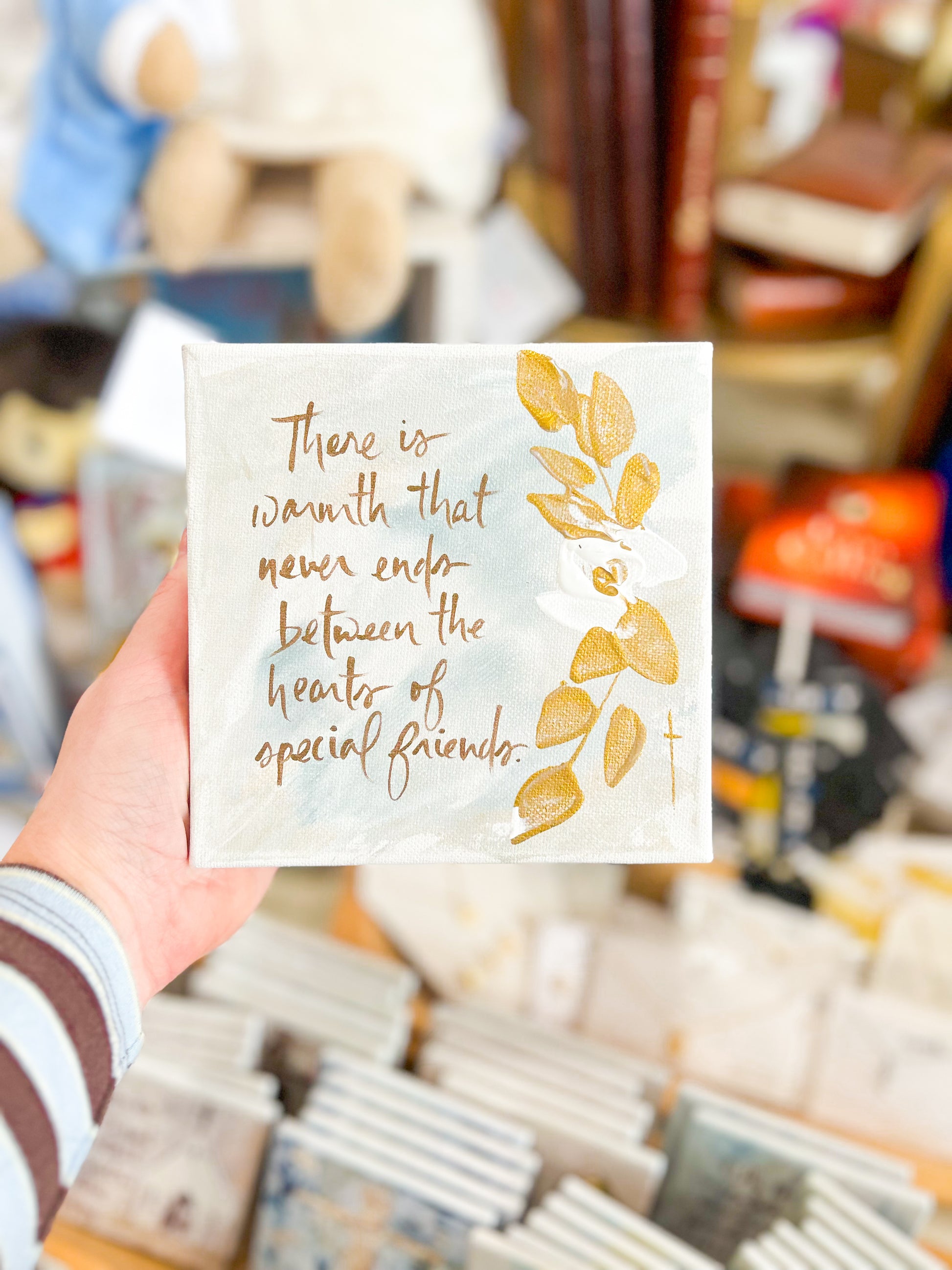 6x6 There is Warmth Gold and White Florals