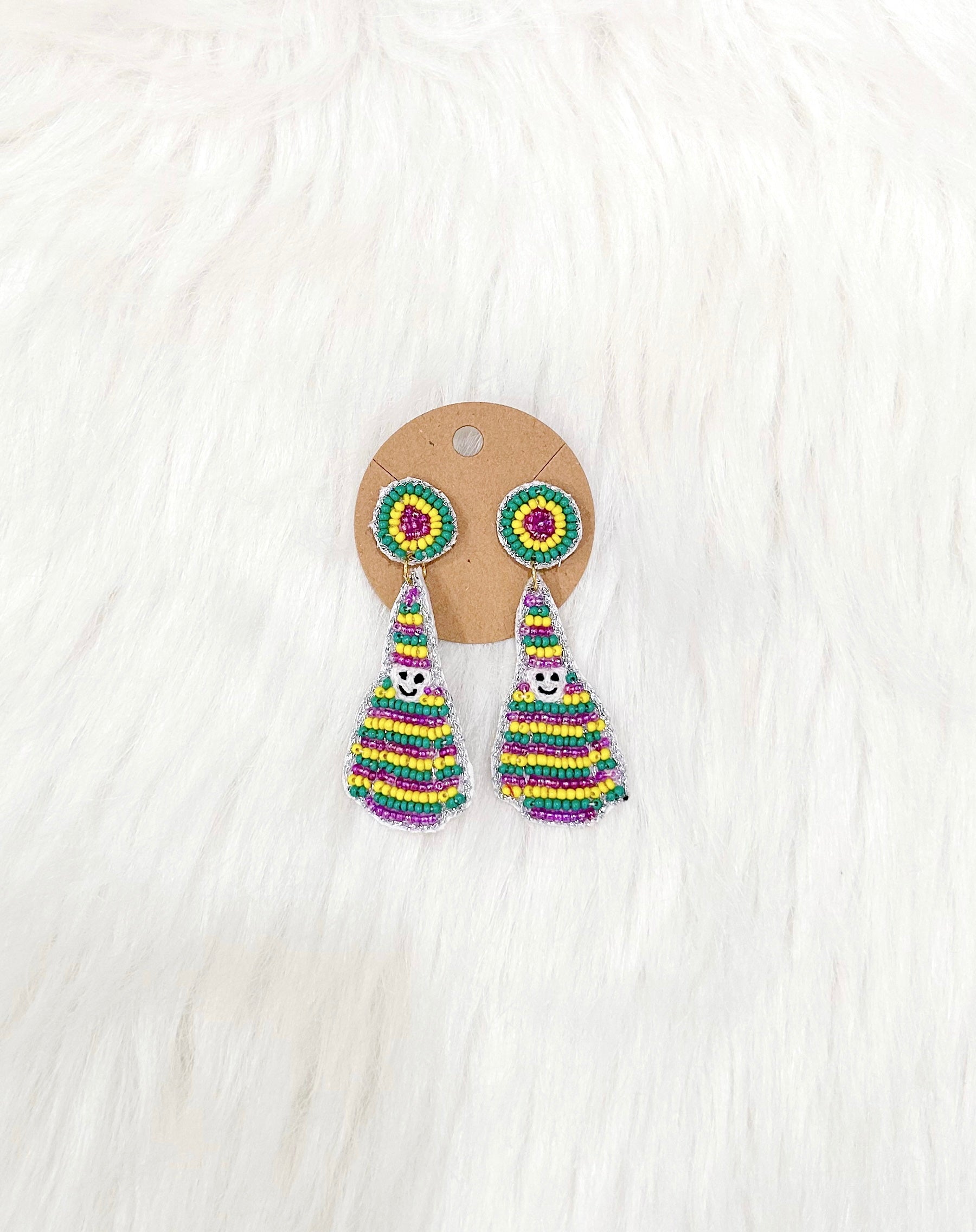 Get ready to let the good times roll with these fun and festive Beaded Mardi Gras Costume Earrings! With colorful beaded details, these earrings are the perfect accessory to complete your Mardi Gras look. Bring some extra flair to your celebration and stand out in the crowd with these quirky earrings.