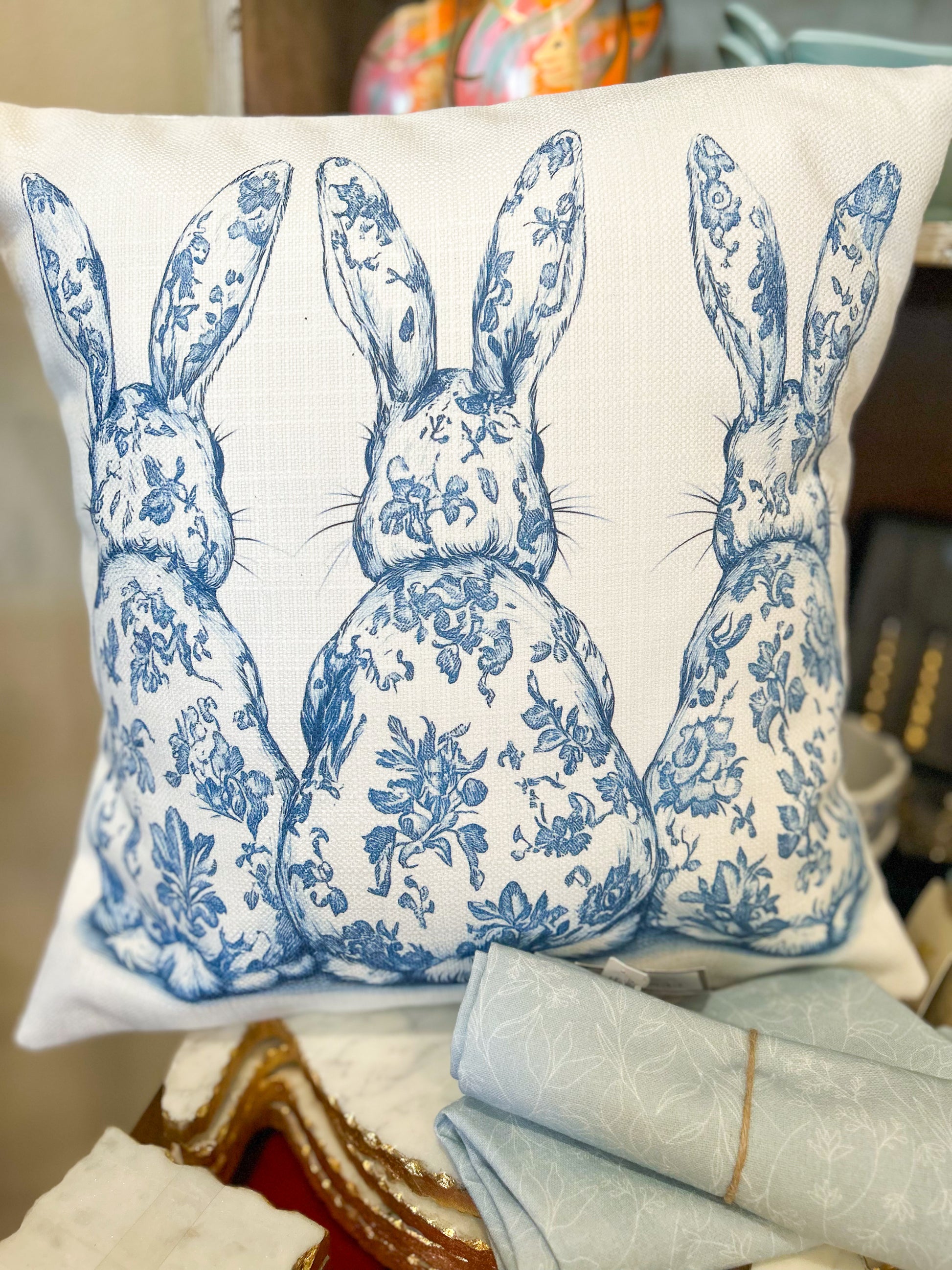 Bring timeless elegance to any room with this stunning Blue Chinoiserie Triple Bunny Square Pillow. Featuring an enchanting design that blends traditional Asian-inspired artistry with whimsical bunny motifs, this pillow adds character and sophistication to your décor. The rich blue palette complements both modern and classic interiors, while the square shape offers versatile styling options for sofas, beds, or accent chairs. Crafted for comfort and durability, it's the perfect way to introduce artistic flair and cozy charm to your space.