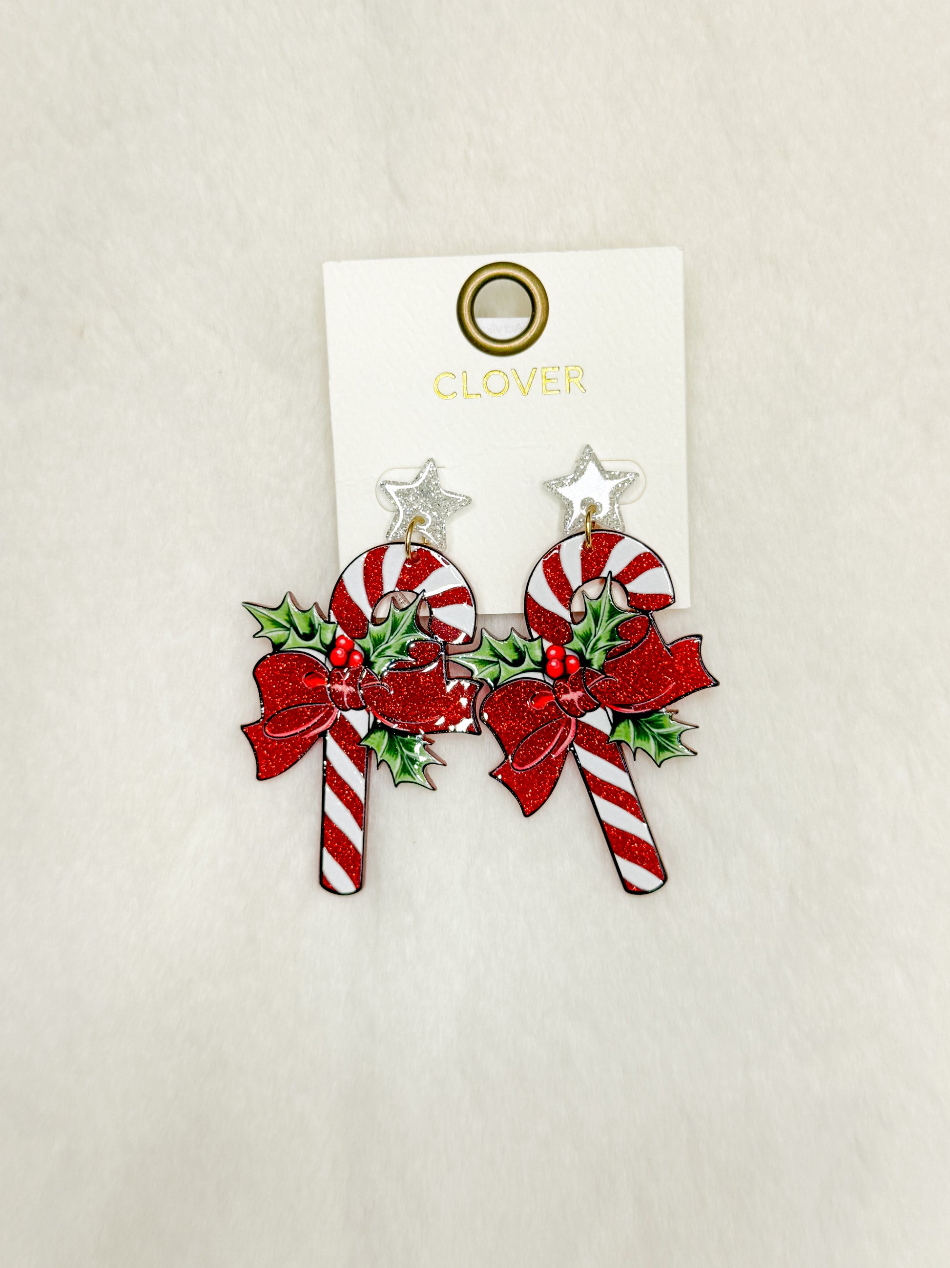 Candy Stripe Spark Acrylic Candy Cane Earrings