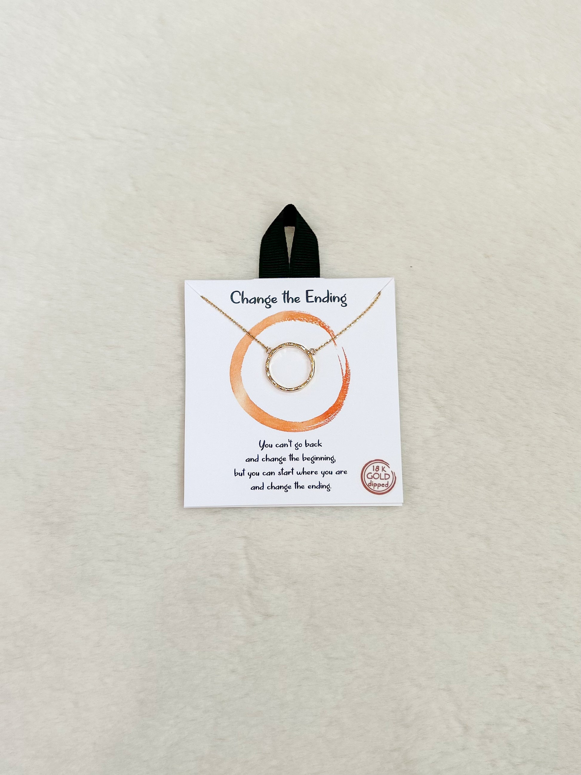 Make a statement with the Change the Ending Gold Hoop Necklace—a stunning piece that's as meaningful as it is gorgeous. Crafted with 18K gold-dipped brass and designed to be hypoallergenic, this versatile hoop works for sensitive skin and everyday wear. The adjustable 16" length plus 2" extender lets you customize your fit for the perfect drape. Whether you're layering it or wearing it solo, this necklace is your go-to for adding a touch of elegance to any look.