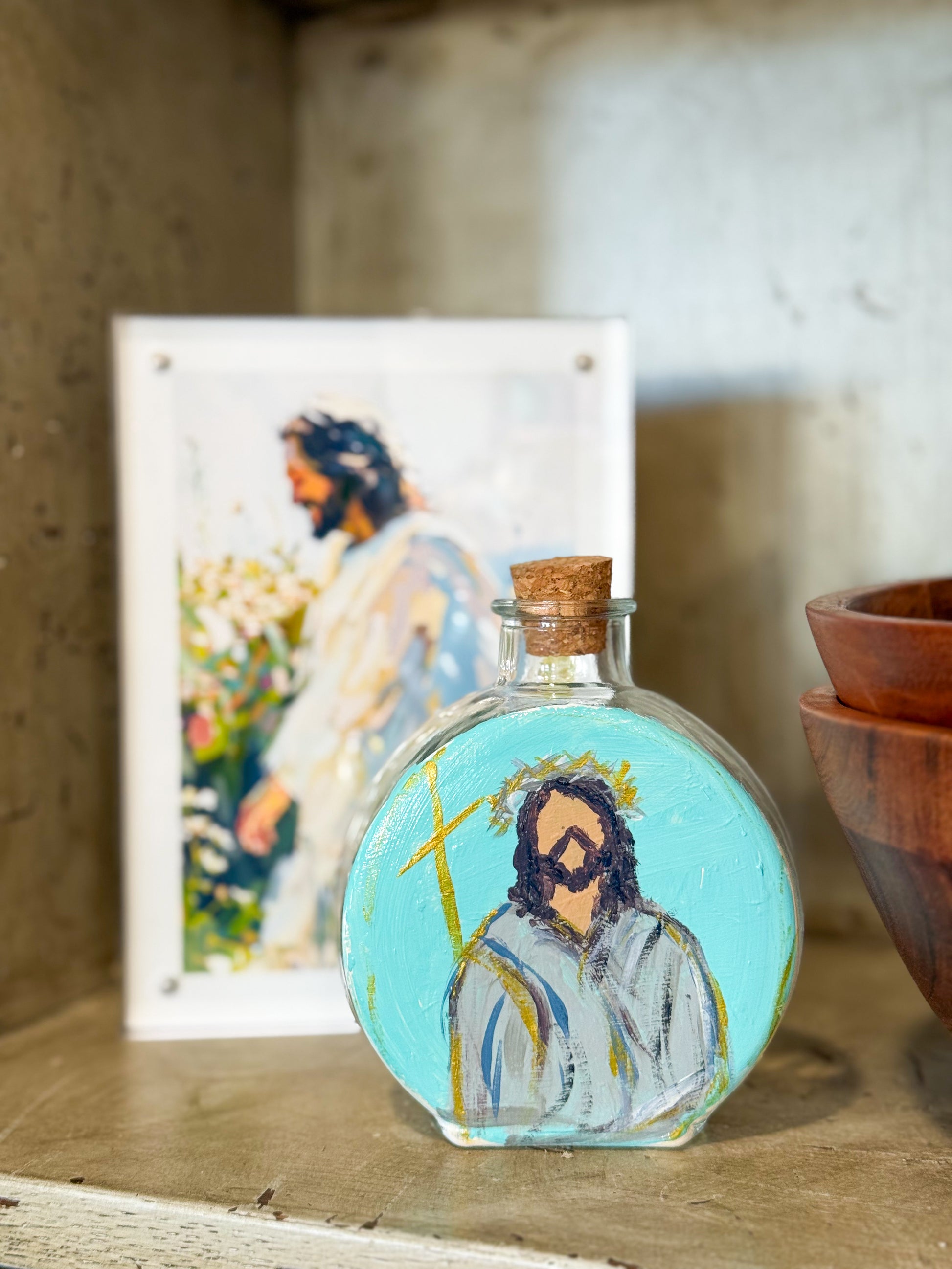 This beautiful hand-painted holy water container features a reverent image of Jesus, lovingly crafted to serve as a daily reminder of faith, protection, and devotion. Designed for home prayer spaces, bedside tables, or entryways, it offers a meaningful way to keep holy water close for personal prayer and blessing. Each piece is thoughtfully created with delicate brushwork and heartfelt detail, making it a treasured addition to any Catholic home.