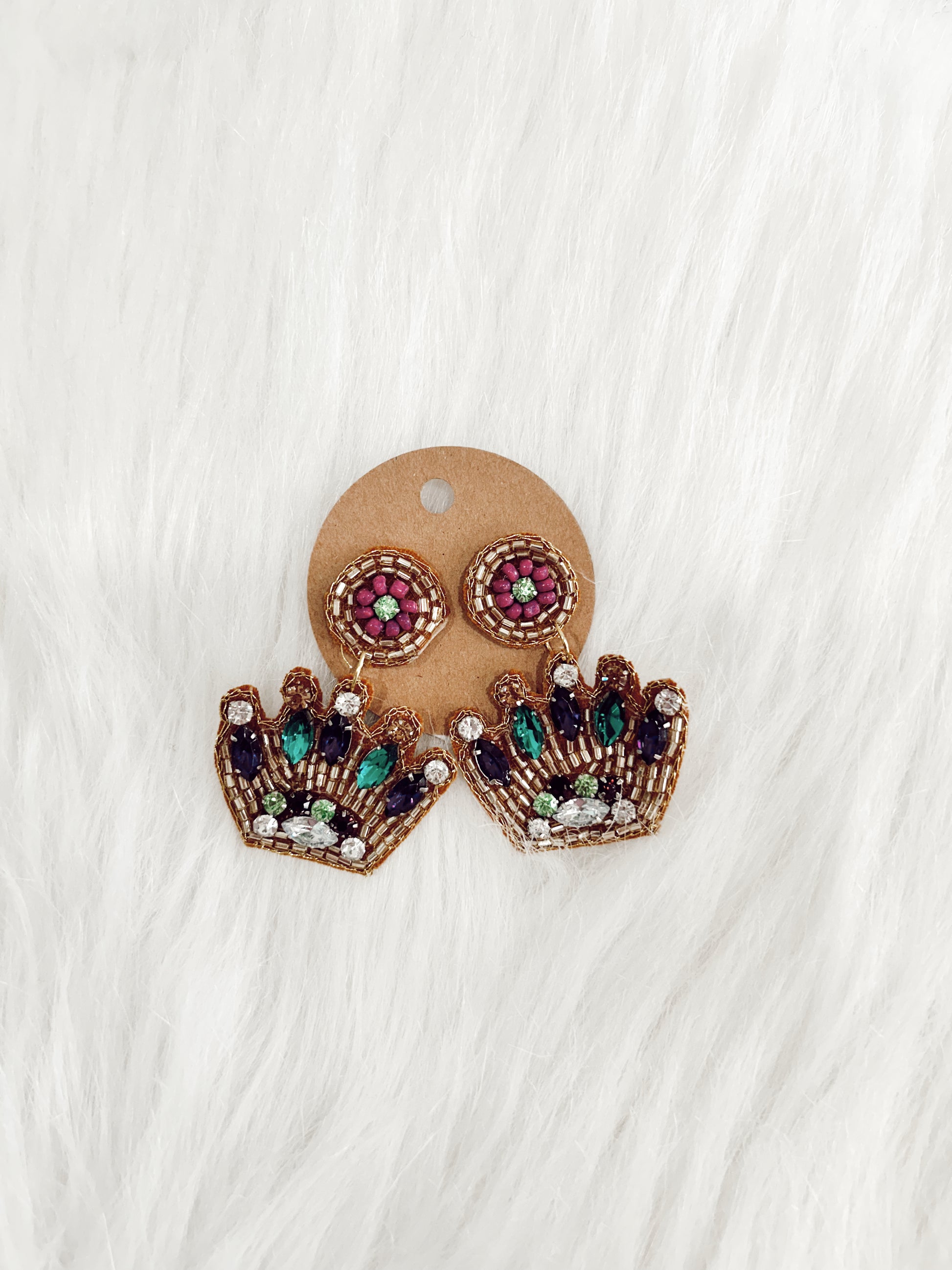 Add some royal flair to your Mardi Gras look with our Crown Jewels earrings! These earrings will make you feel like a true monarch while you party with your fellow revelers. Show off your style and rule the parade with these stunning and playful earrings.