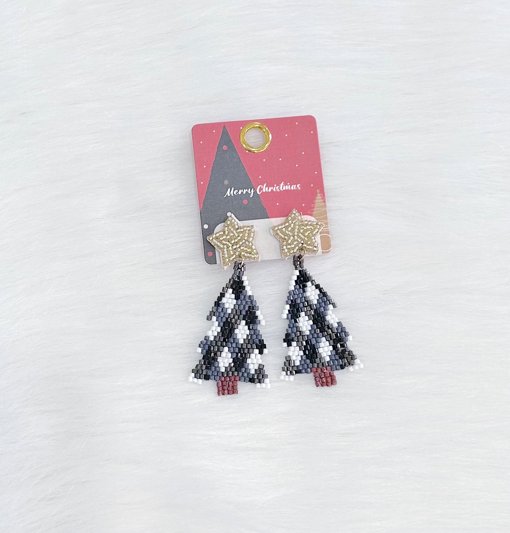 Add some festive sparkle to your holiday look with these Diamond Beaded Christmas Tree Earrings! Featuring a playful pattern of blue, white, black, and grey diamonds, these dangle earrings are perfect for any Christmas party or gathering. Elevate your style and spread some holiday joy with these quirky and fun earrings.