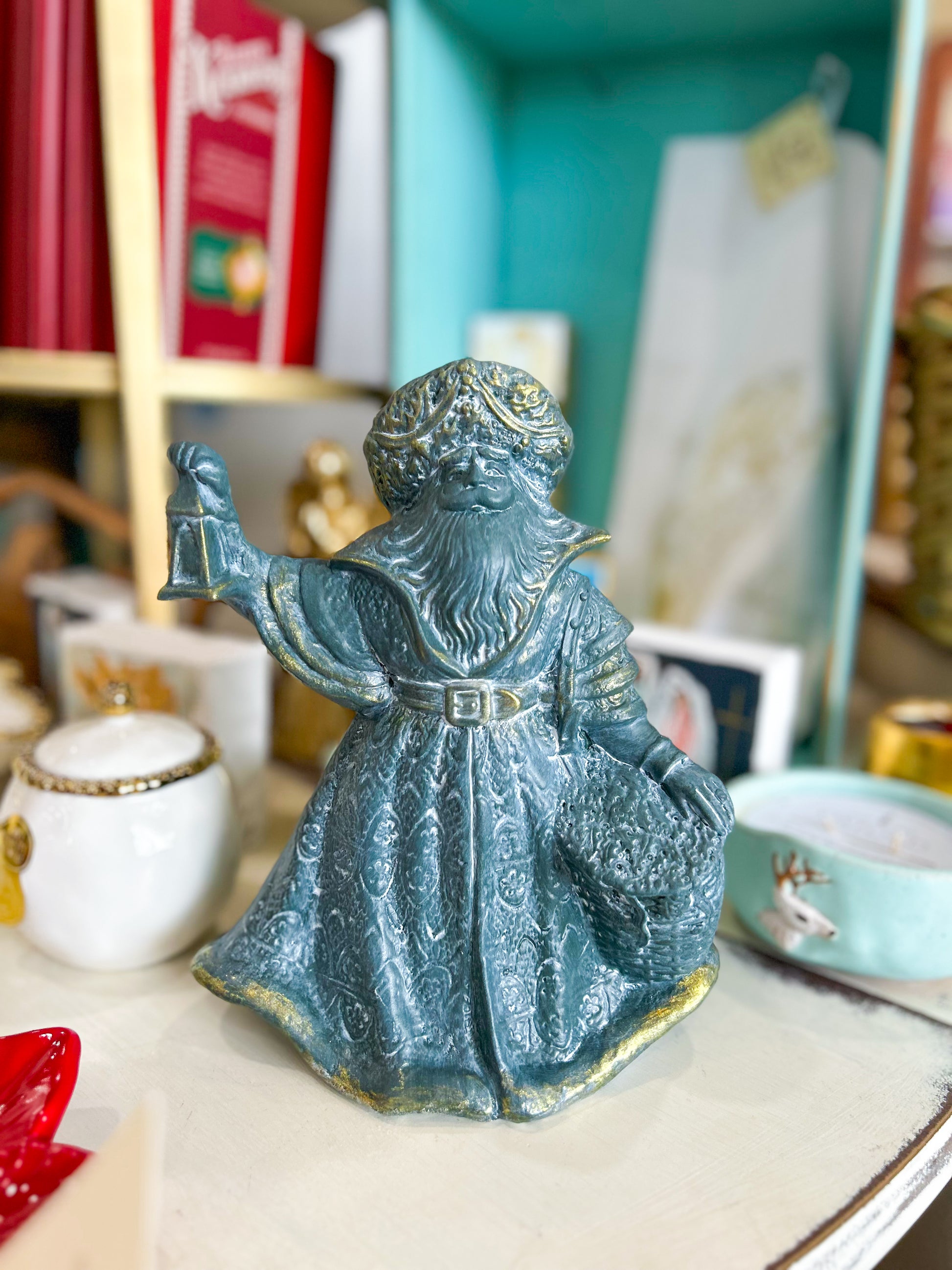 Redeemed in Crowley, Louisiana, and beautifully redefined for Christmas décor—perfect for the mantle, kitchen styling, or seasonal vignettes—this evergreen Santa adds an elegant touch of nostalgia to your holiday home. A distinguished figure full of tradition, grace, and vintage allure.
