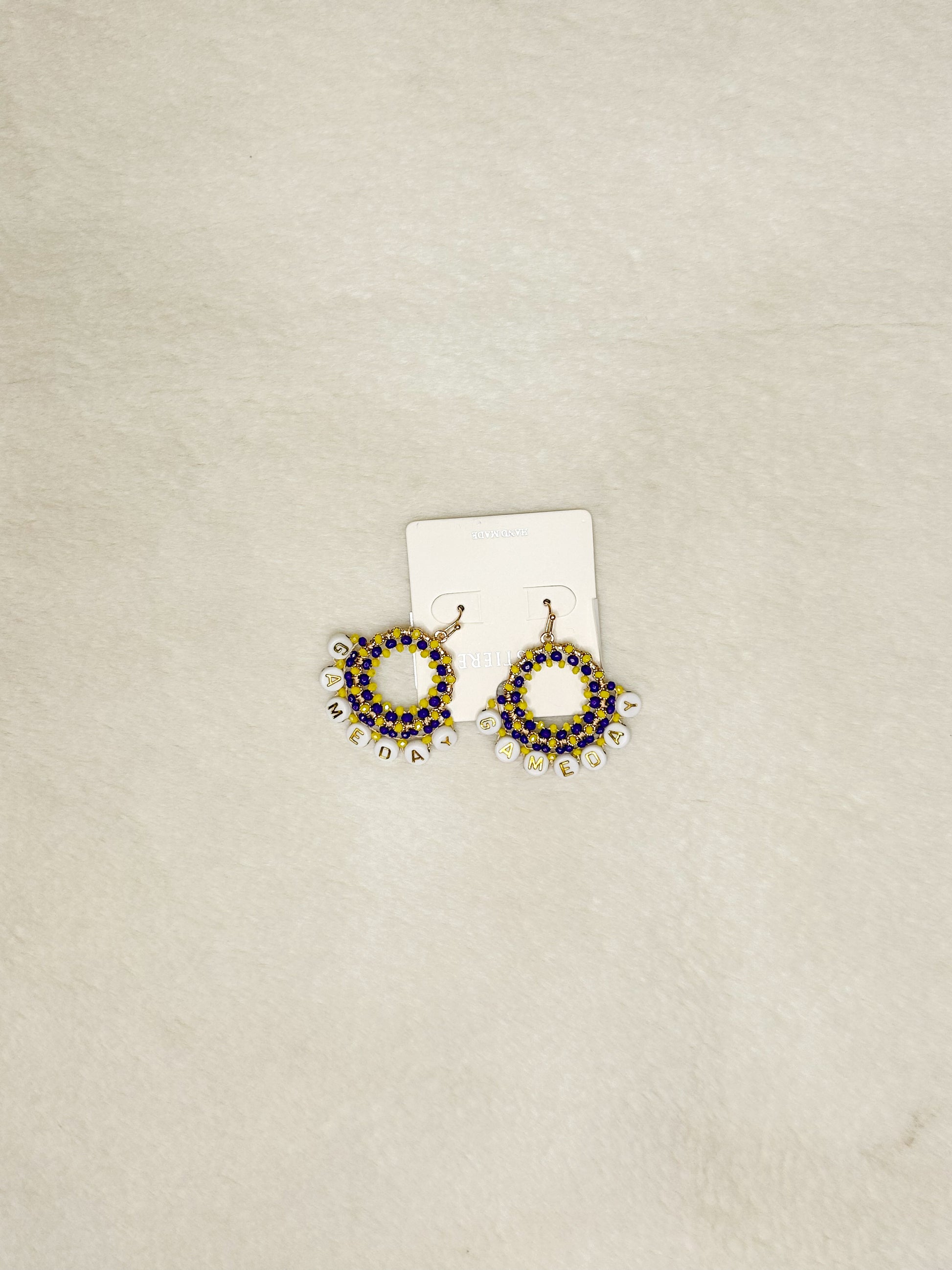 Show your team spirit in style with these bold Purple & Gold Gameday Letter Earrings. Designed with lightweight statement letters that sway with every cheer, these earrings bring the perfect pop of color for tailgates, stadium nights, and every LSU-inspired outfit in between.