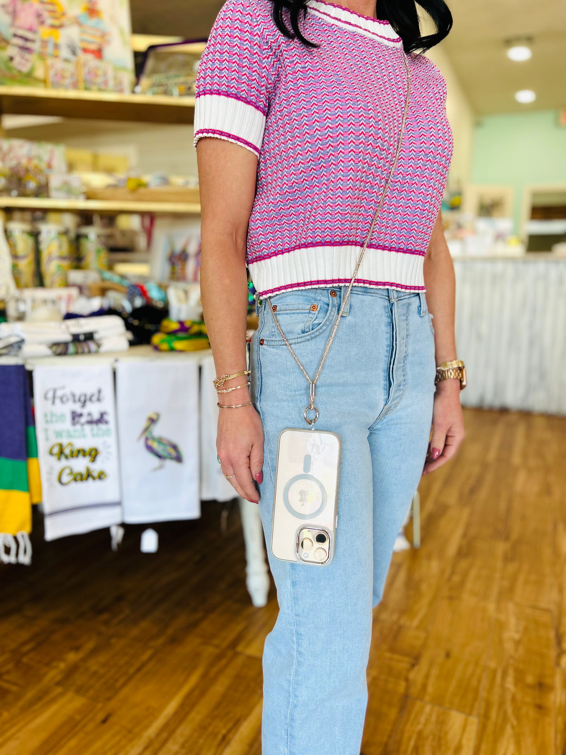 Keep your phone within reach and your hands completely free with this stunning Gold Rhinestone Phone Holder. Adorned with sparkling rhinestones, it's the perfect accessory for Mardi Gras celebrations or any occasion where you want to add glamorous flair. Secure, stylish, and functional—this holder transforms how you display and access your device.
