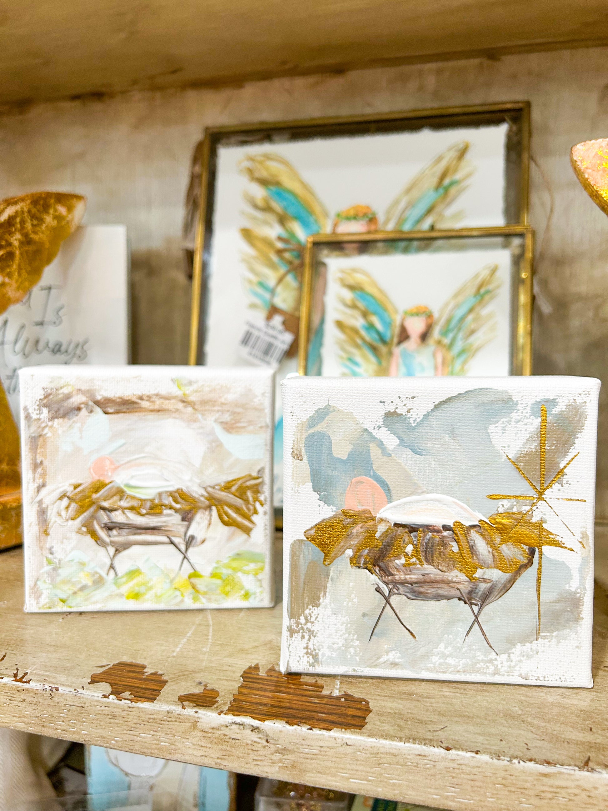 Celebrate the holiday spirit with this charming 4x4 canvas art featuring the playful “Away In The Manger” gospel message. Perfect for adding a joyful touch to your home or gifting to loved ones, this piece brightens any space with its warm, festive vibe. Easy to hang and a delightful reminder of the season’s true meaning, it’s a merry way to spread cheer all year long.