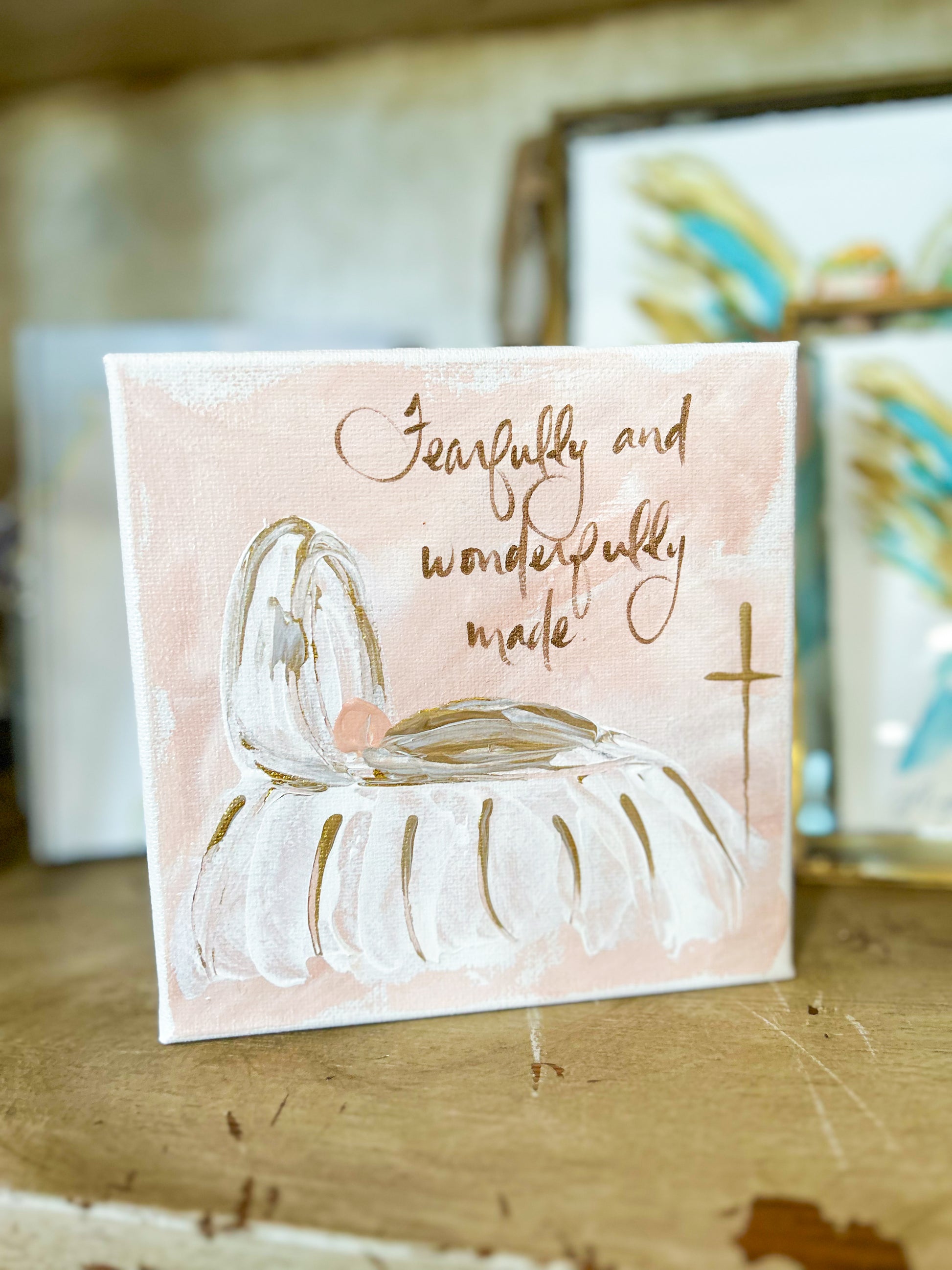 Add a touch of warmth and joy to your nursery with this charming 6x6 canvas art featuring a sweet baby in a crib alongside an inspiring gospel saying. Its playful design brings a smile and comforting vibes, making it the perfect little piece to brighten up your baby's space or as a thoughtful gift for new parents.