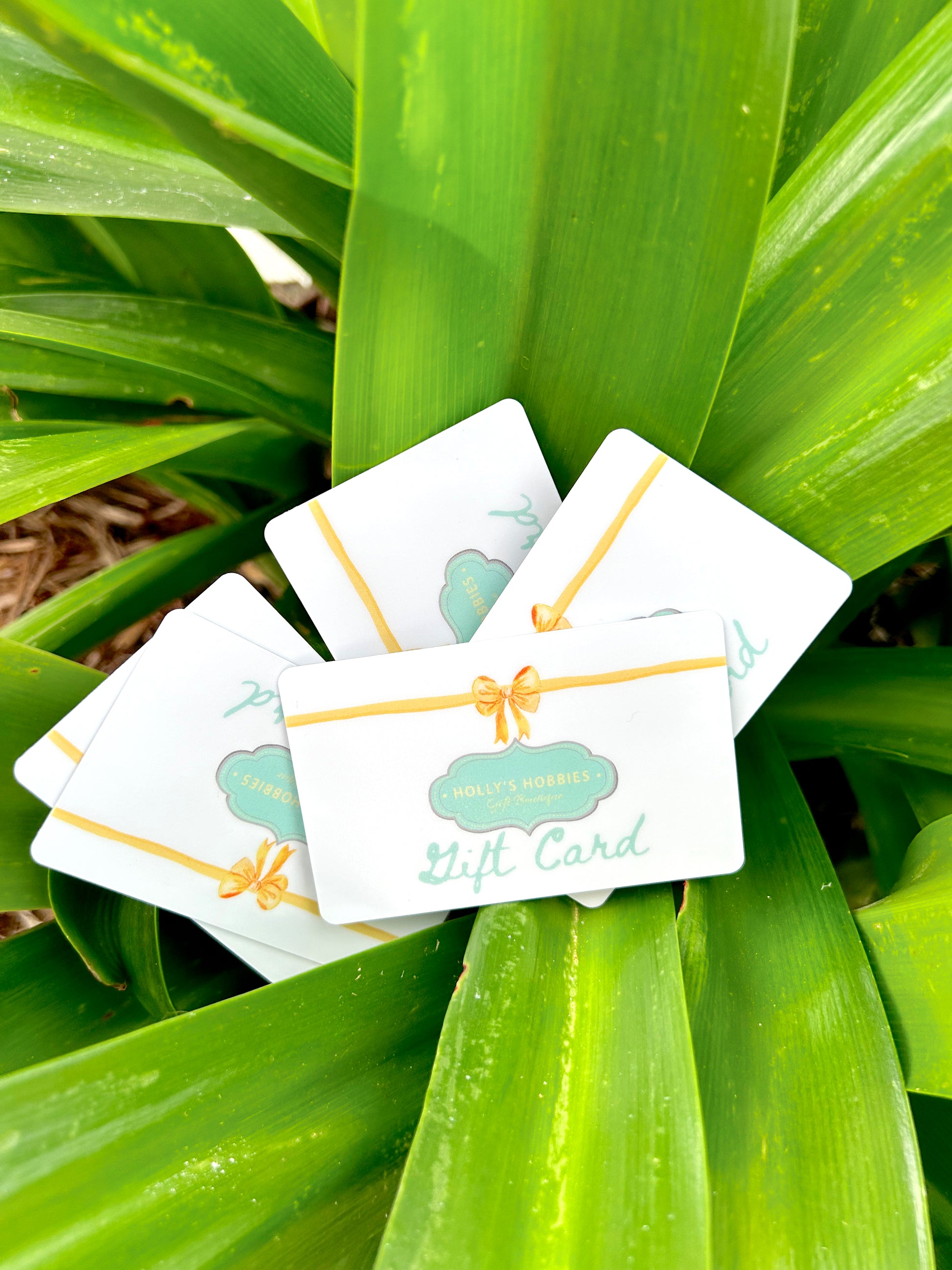 What better gift than the gift of an experience? Our Gift Cards are a great way to give thanks, celebrate, or even just treat someone special with a surprise. If you would like to purchase a Gift Card, please select that option on the product titled "Holly's Hobbies Gift Card." If you don't see your budget, feel free to give us a call at 337-323-9253 to purchase a custom budget Gift Card.