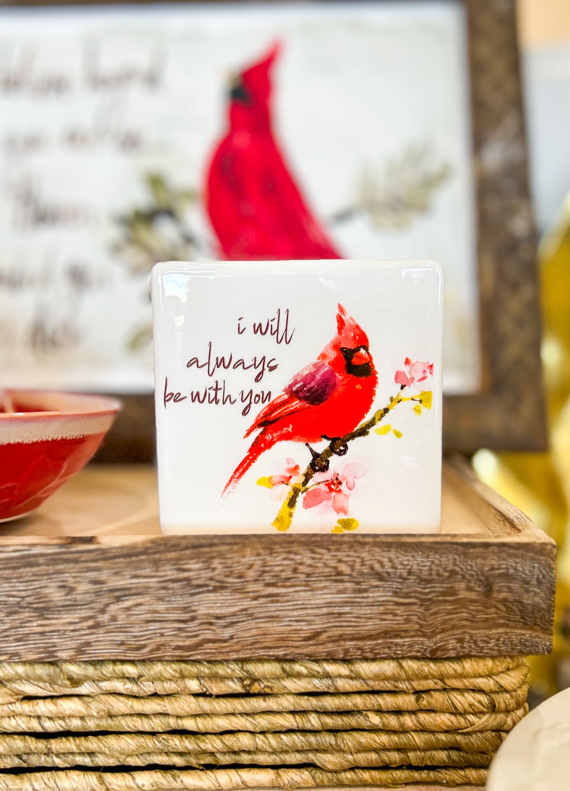 This elegant "I Will Always Be With You" Cardinal Block Art combines meaningful sentiment with timeless charm. Featuring a detailed cardinal motif, this piece serves as a refined reminder of enduring presence and support. Perfect for adding a sophisticated touch to any room, it blends beautifully with various décor styles while evoking warmth and connection.