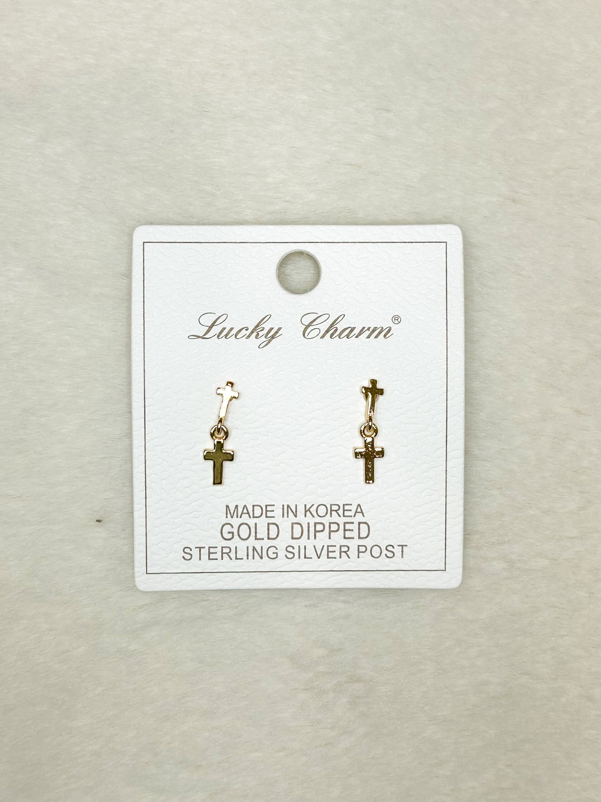 Lucky Charm Gold Cross Dangle Stud Earrings