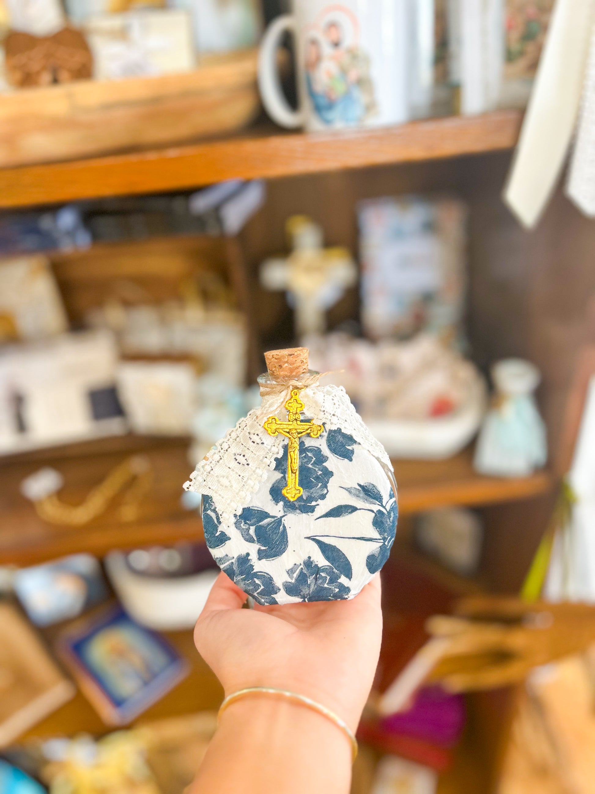 Add a touch of charm to your spiritual routine with the Maria Floral Holy Water Container. Its blue-grey floral design brings a whimsical, serene vibe while keeping your holy water safe and accessible. Perfect for home or travel, this playful container blends beauty and purpose effortlessly.