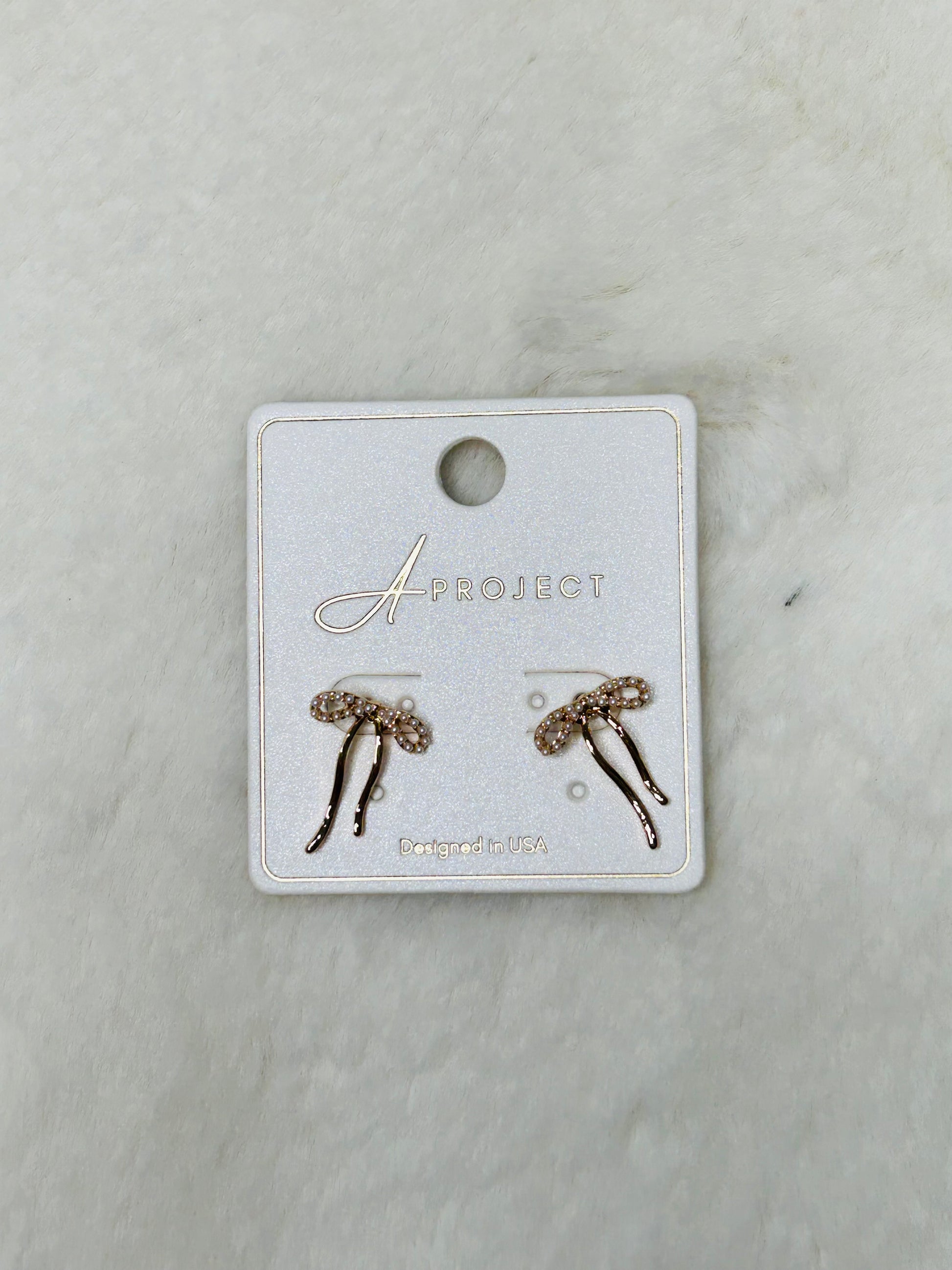 Matilda Ribbon Bow Pearl & Gold Stud Earrings