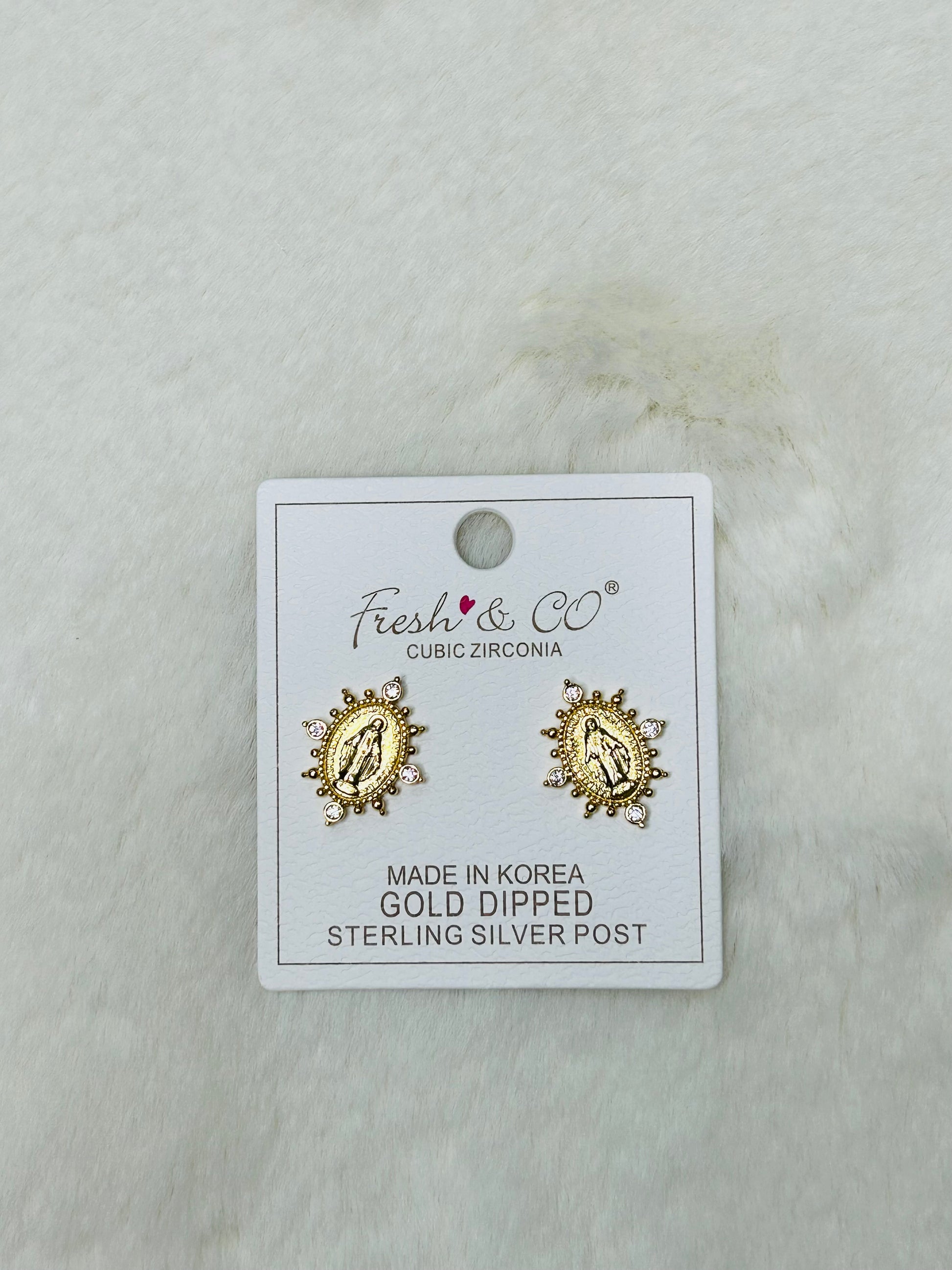 Morning Star Miraculous Medal Gold & Diamond Stud Earrings