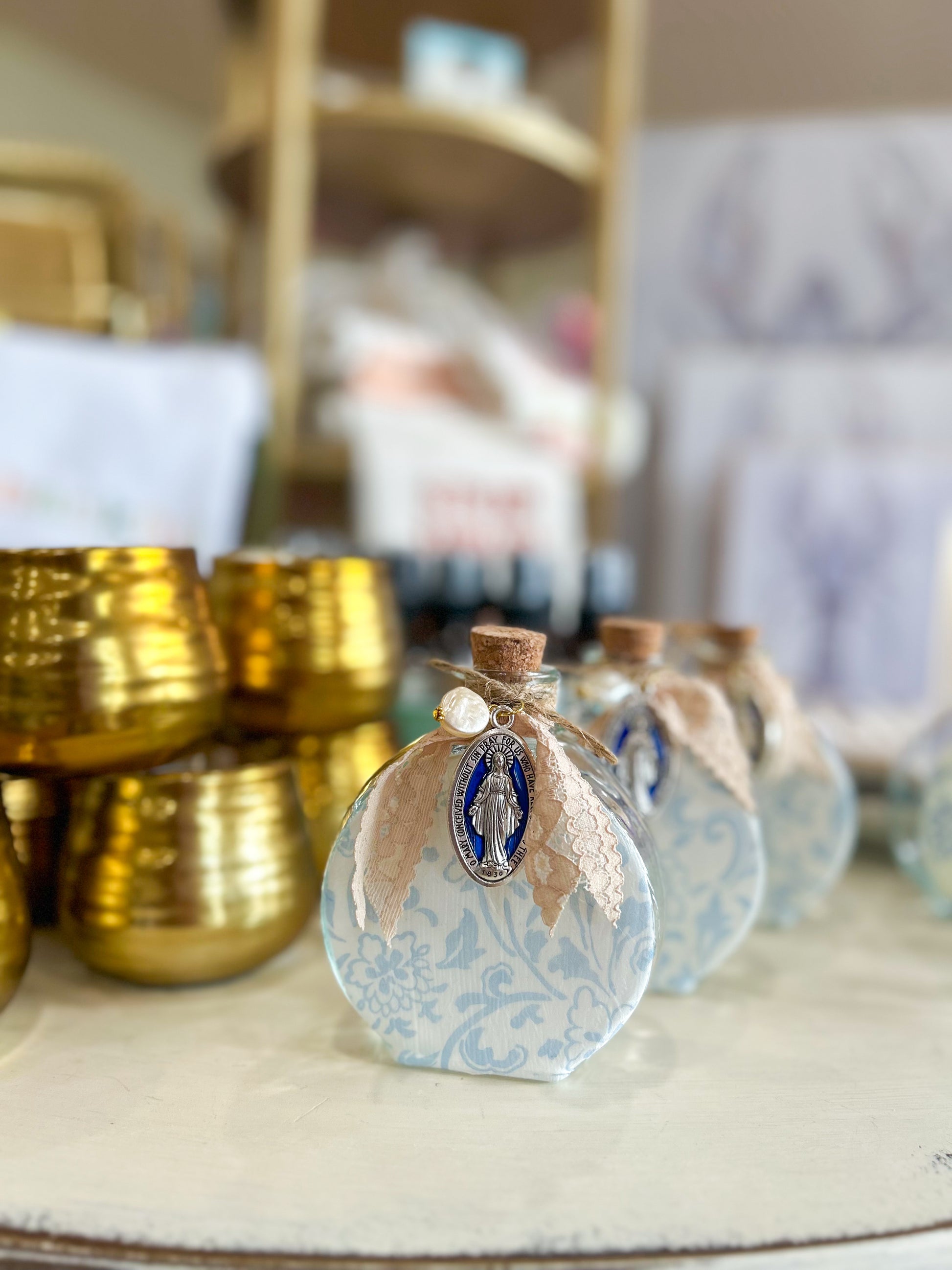 Keep your holy water close with this charming container featuring a delicate floral print and a sweet Mary religious charm. Perfect for adding a touch of grace and whimsy to your daily blessings, it’s both practical and playful—a little reminder that a sprinkle of faith can brighten any day.