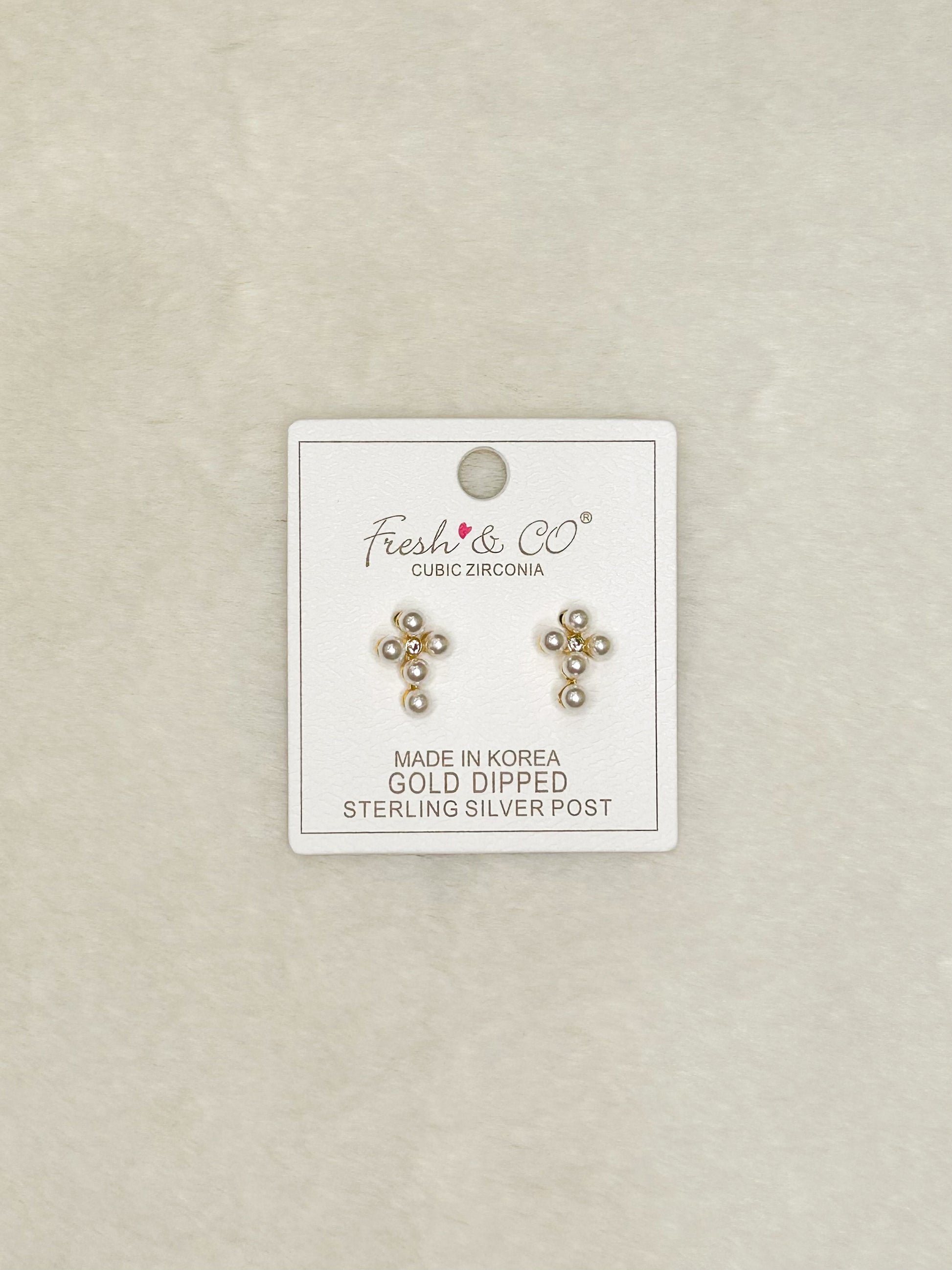 Pearls Cross Studs-- Simple Dainty Earrings