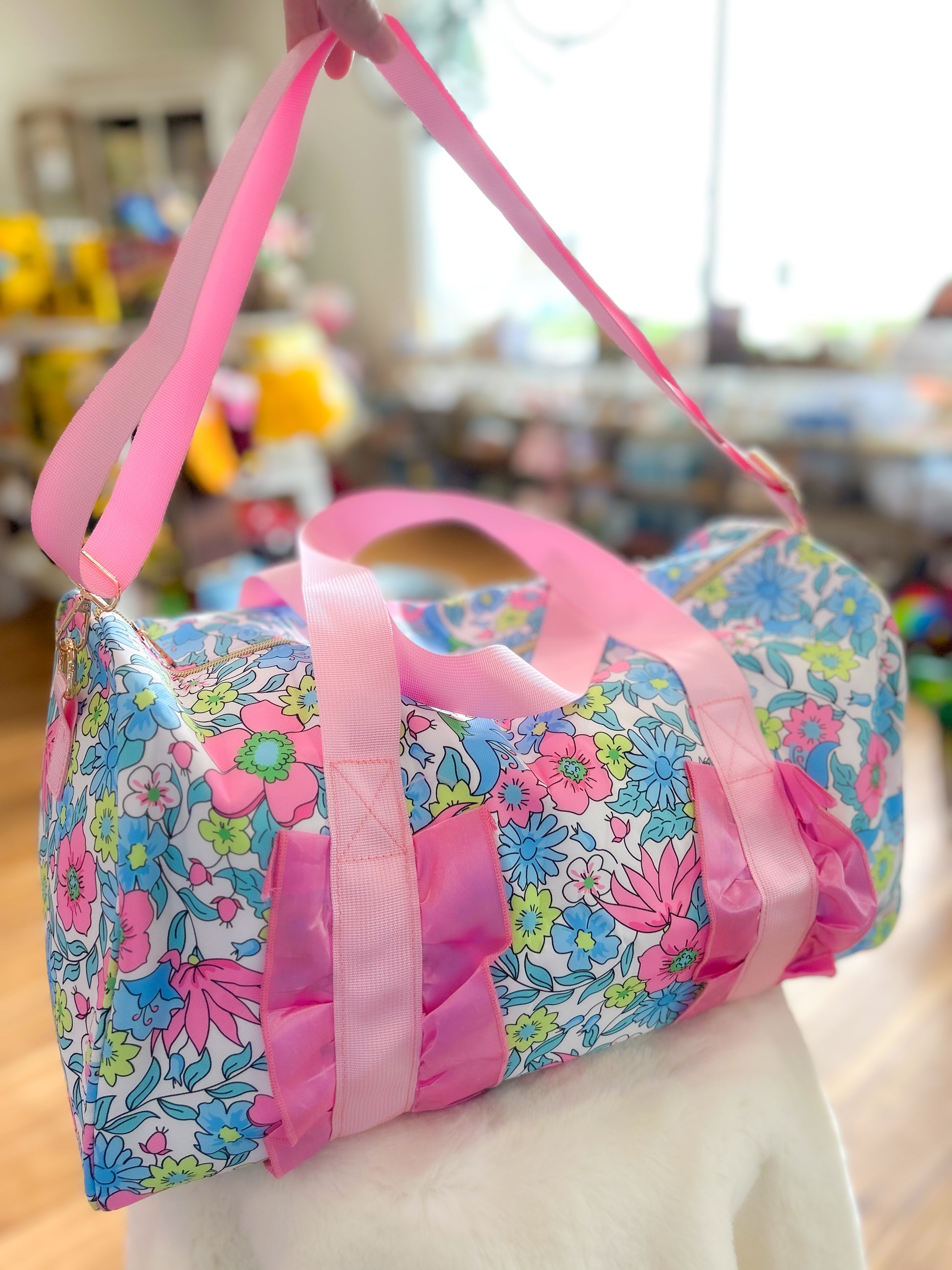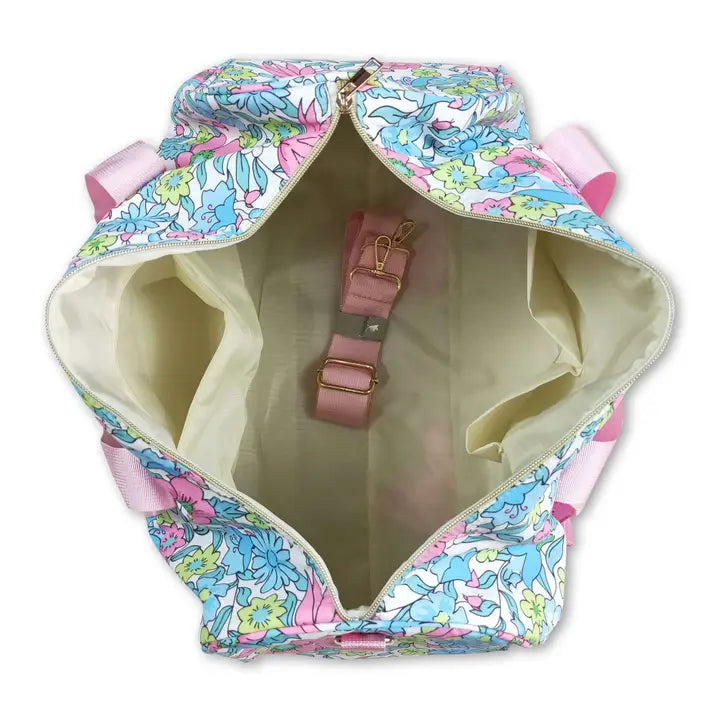 Pink Ruffle Band Floral Women Duffle Bag