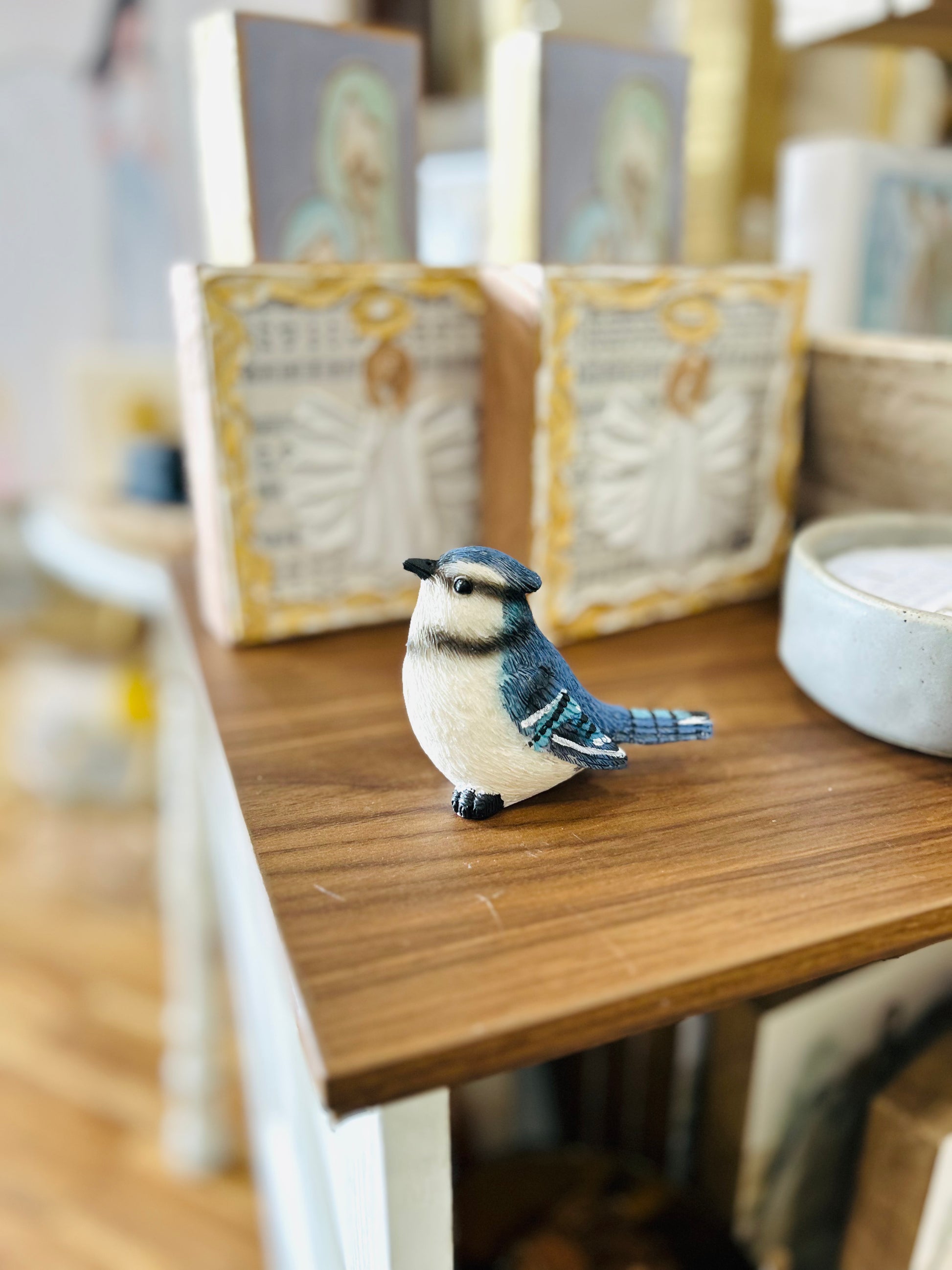 Bring a pop of color to any space with this charming resin blue bird. Measuring just 2x2.75 inches, this petite figurine is perfectly sized for shelves, desks, or windowsills. Hand-crafted from quality resin with vibrant blue detailing, it adds a touch of nature-inspired elegance to your décor. Whether you're a bird enthusiast or simply love unique accent pieces, this delightful little treasure makes a wonderful addition to your collection or a thoughtful gift for someone special.