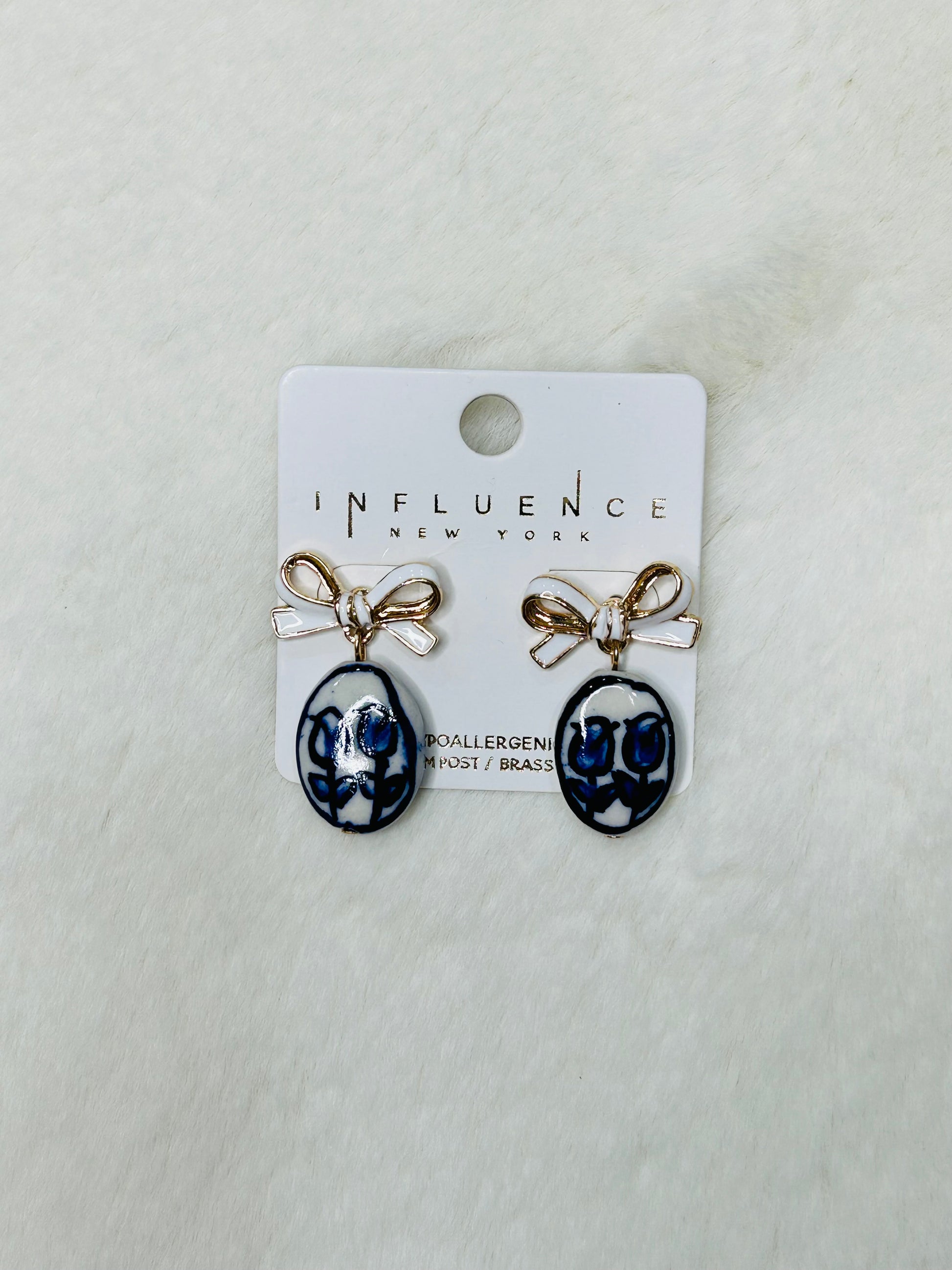 Sadie White Bow Blue Watercolor Earrings