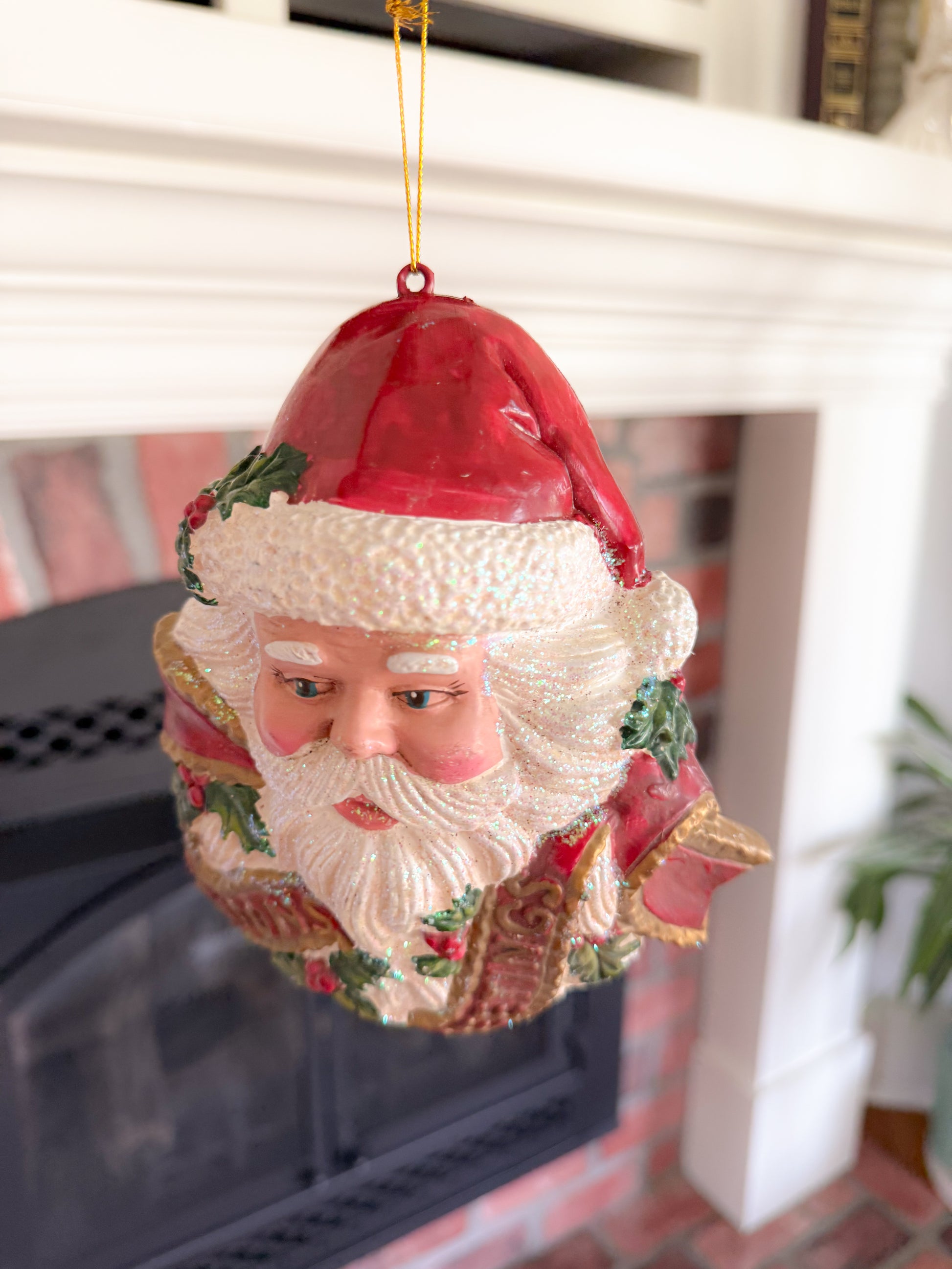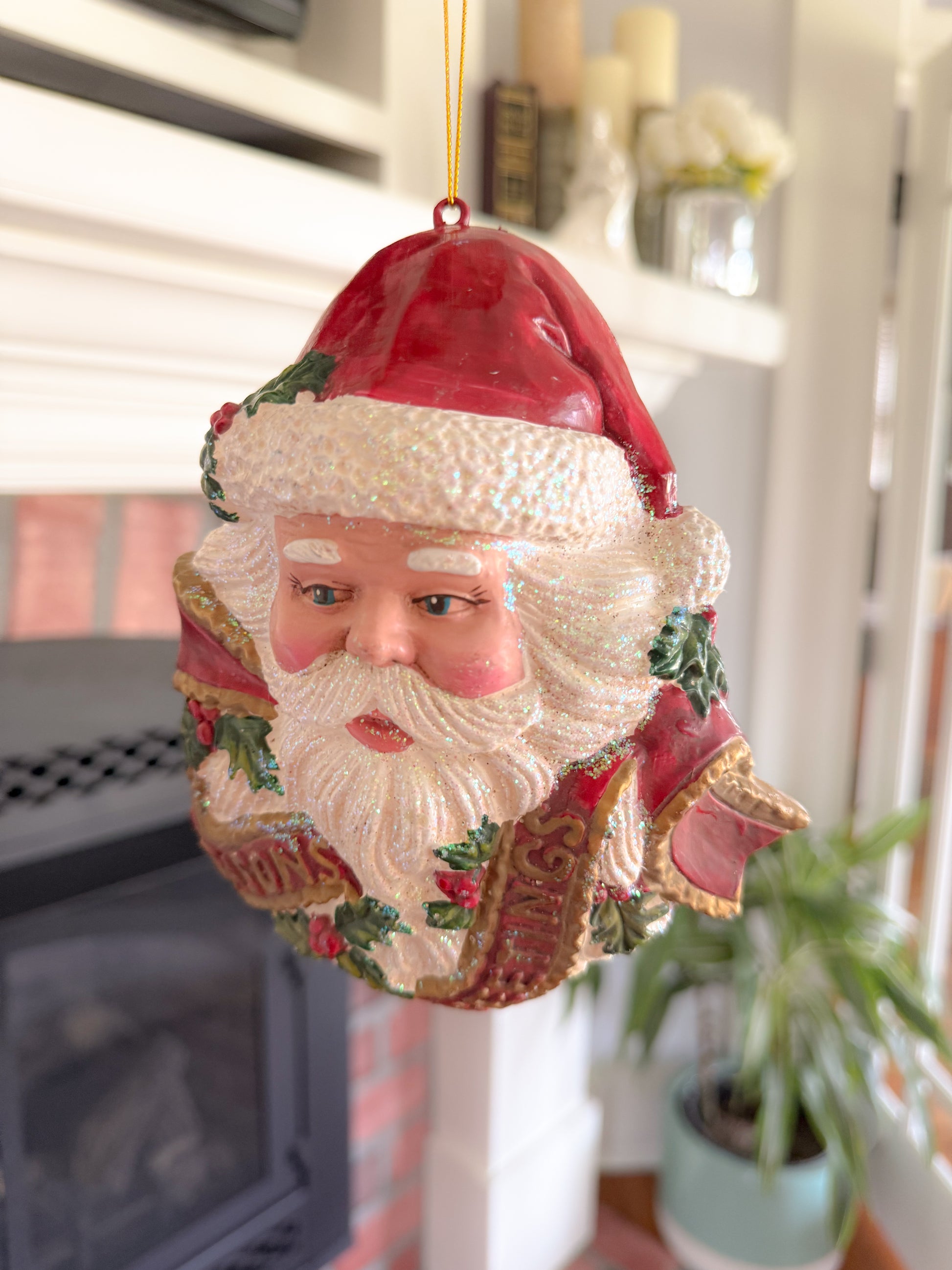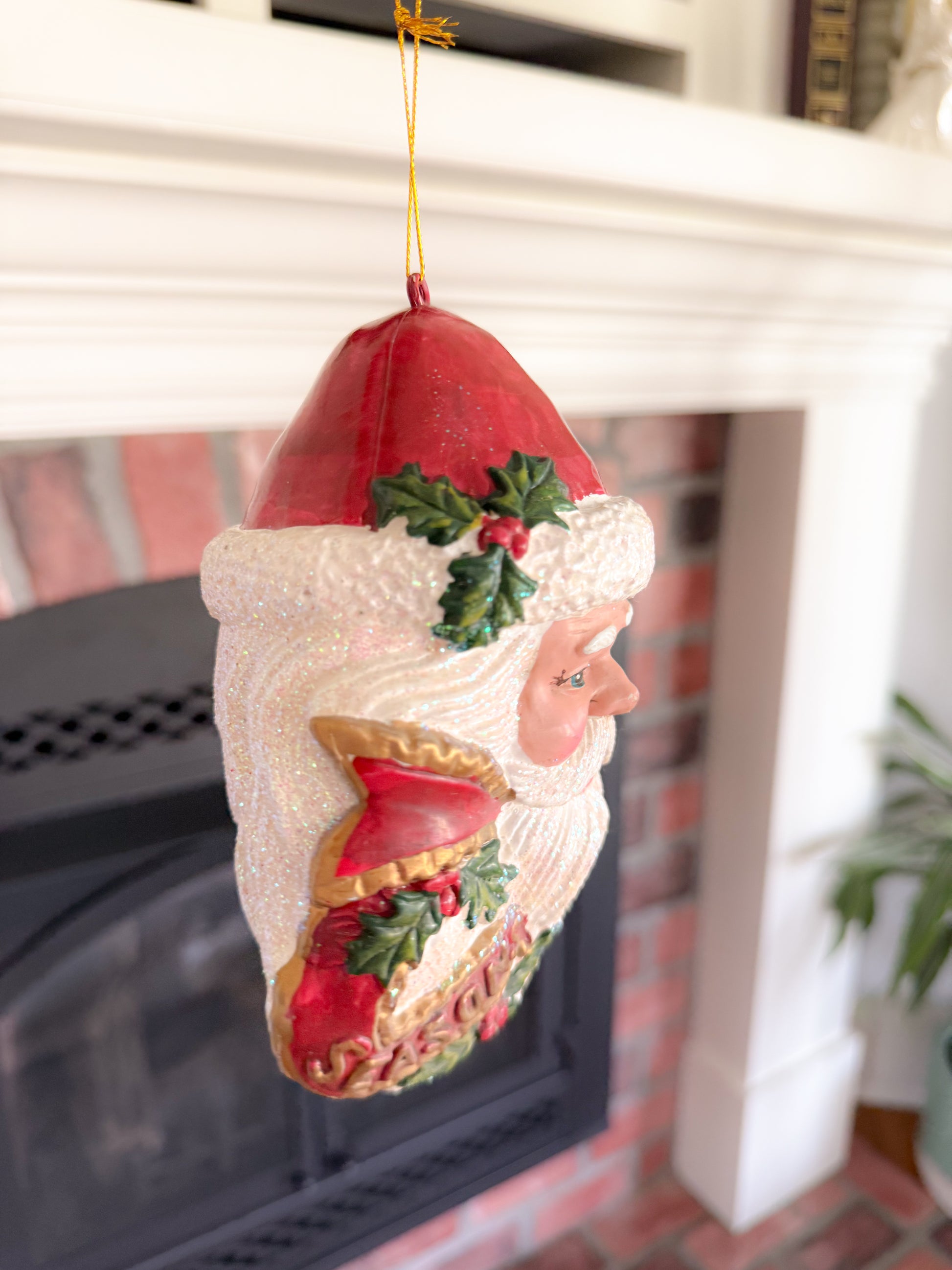 A festive ornament featuring Santa’s face with a cheerful “Seasons Greetings” detail. Perfectly redefined as Christmas décor, it adds a touch of vintage holiday charm to your tree or seasonal displays.