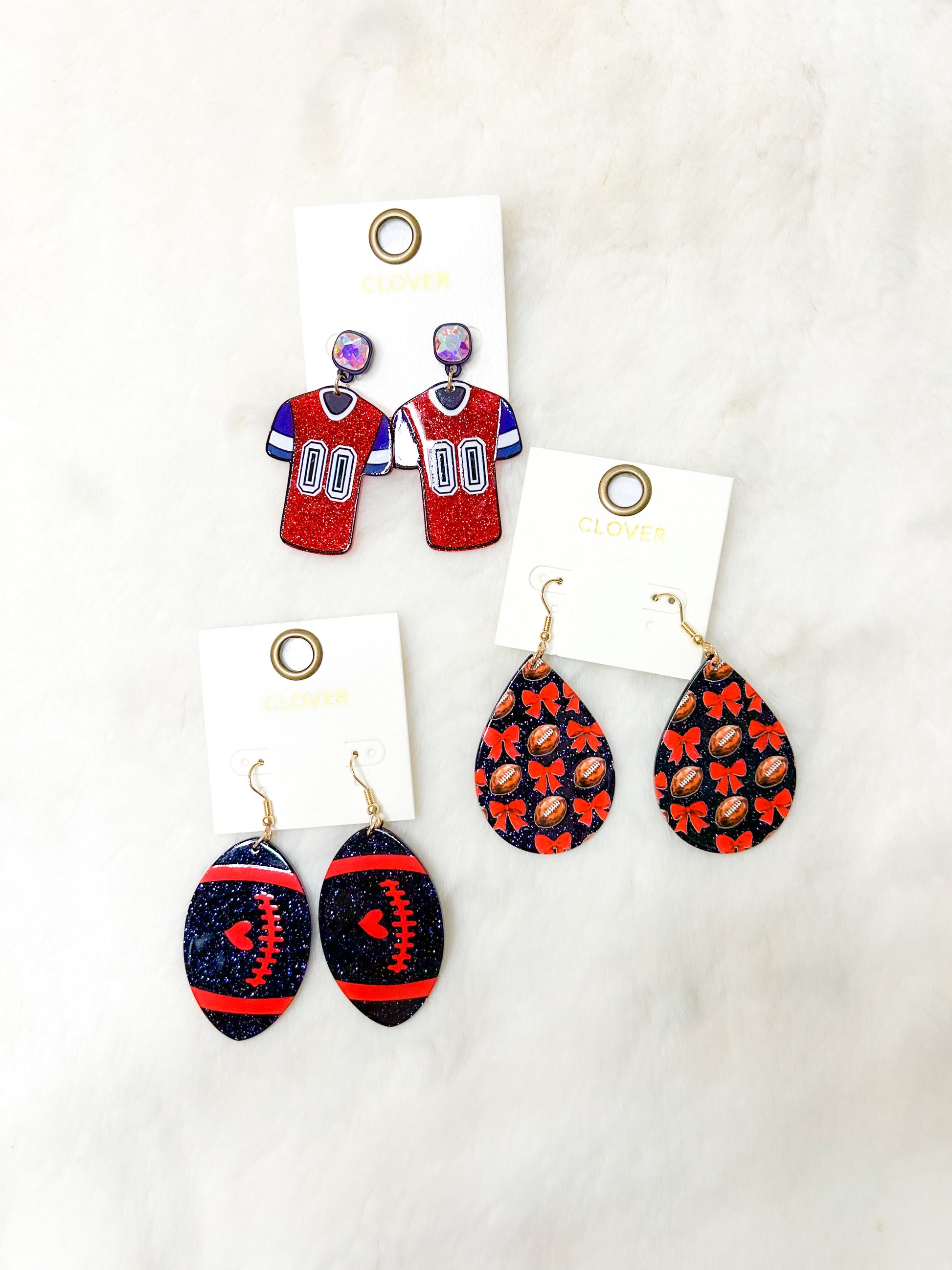 Sparkle Navy/Red Football Earrings
