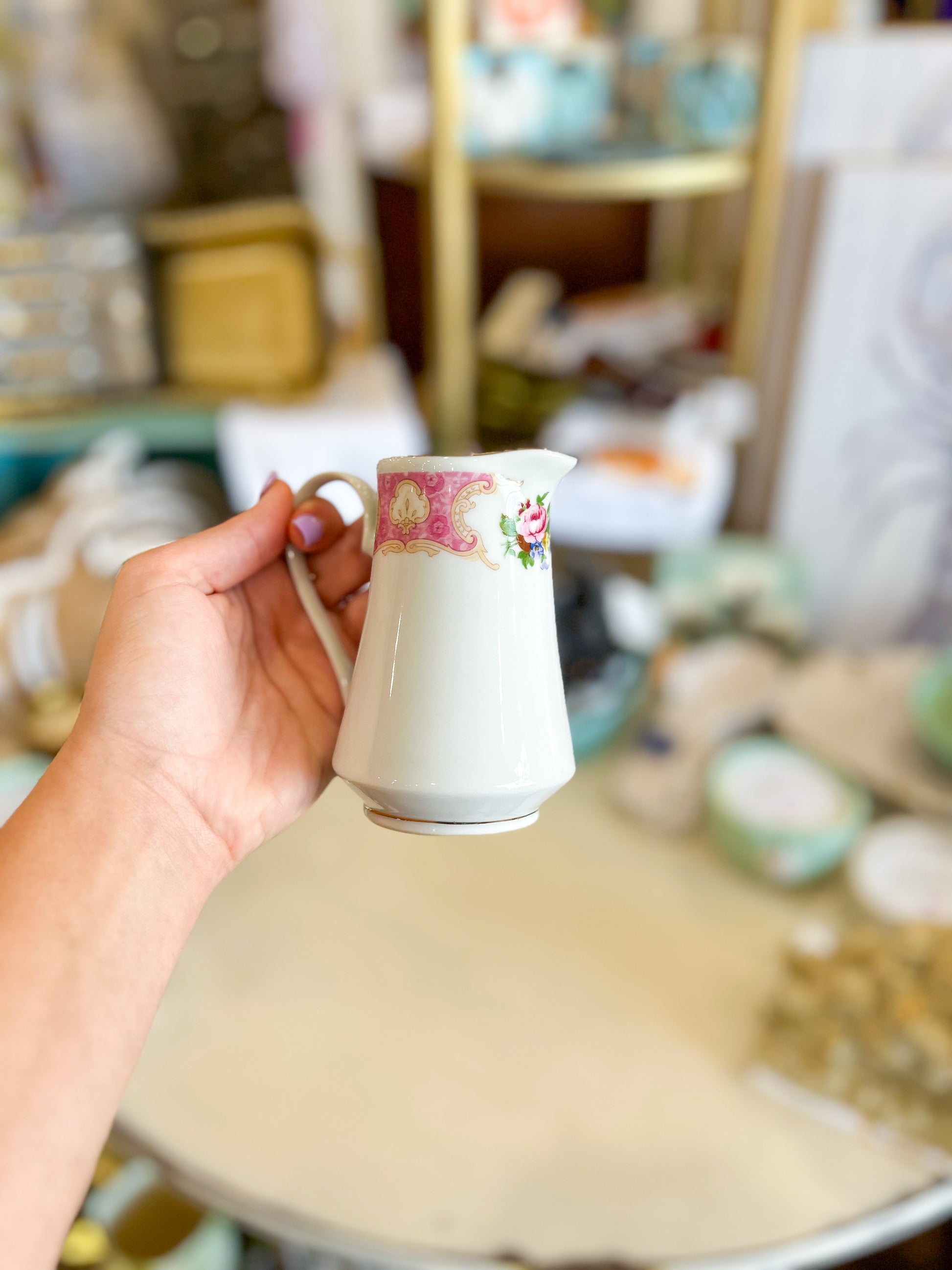 A charming white teacup adorned with delicate spring florals and gold accents. Once meant for afternoon tea, now beautifully reimagined for sussie blooms, décor, or as a sweet holder for ink pens on your desk.