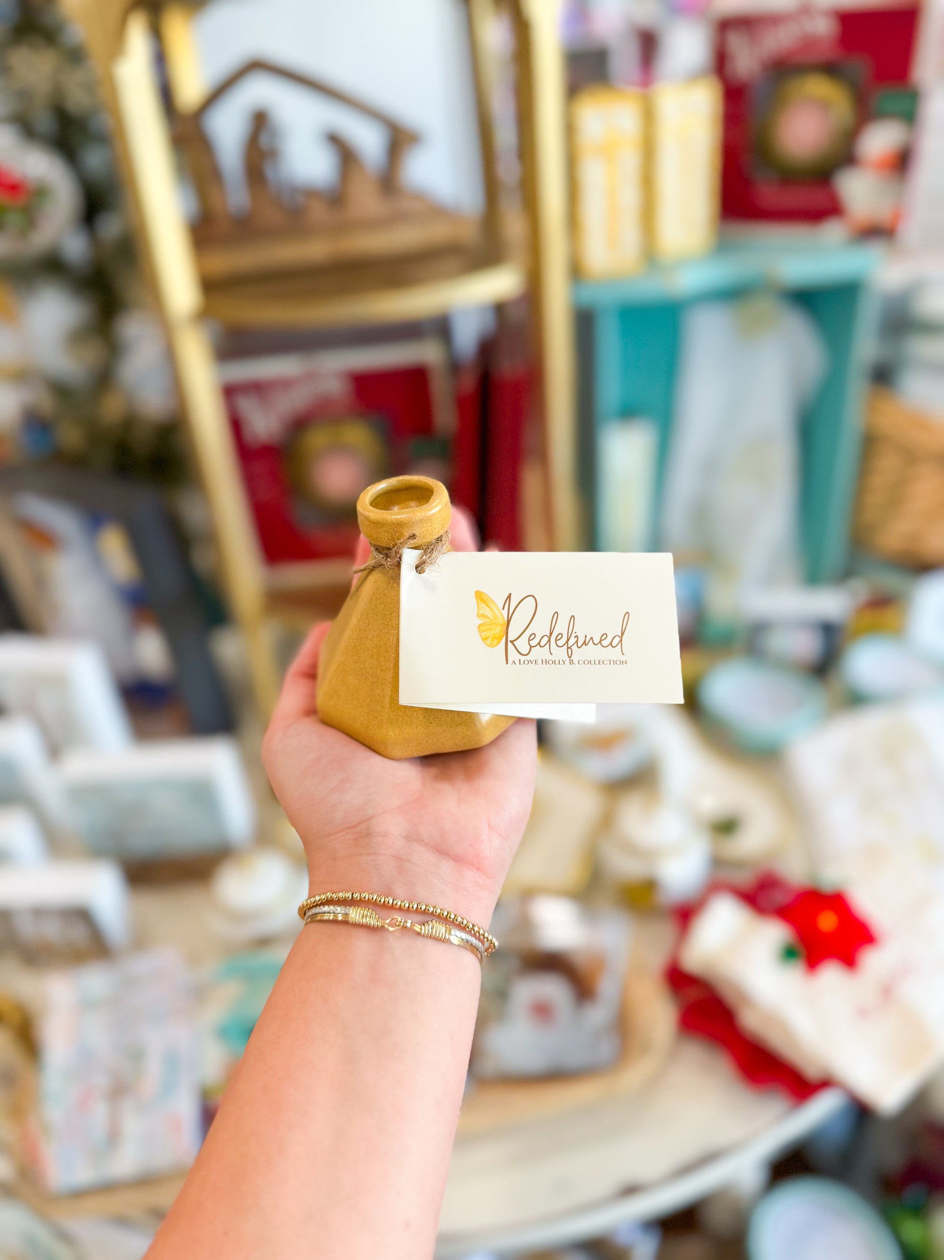 Redeemed in Canton, Texas, and thoughtfully redefined for sussies, décor accents, or fresh and faux floral arrangements, this versatile vase adds natural charm to shelves, countertops, entry tables, and gift bundles. A timeless piece that elevates any space with effortless elegance.