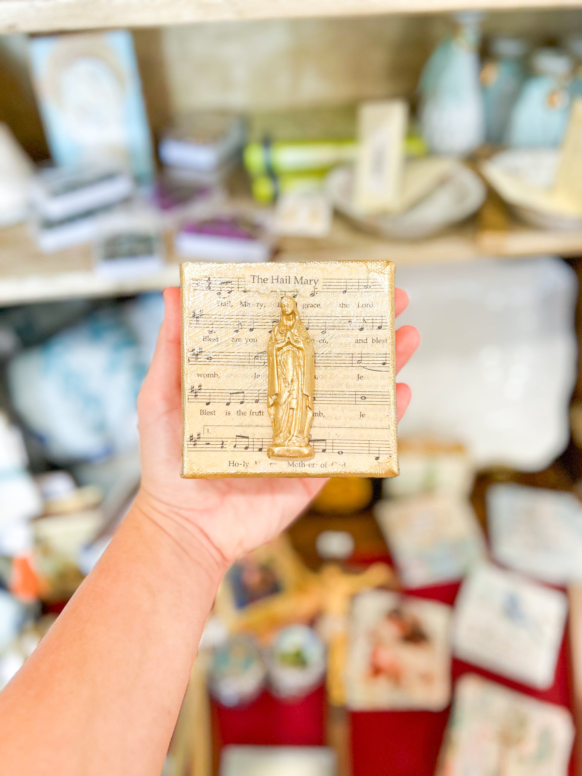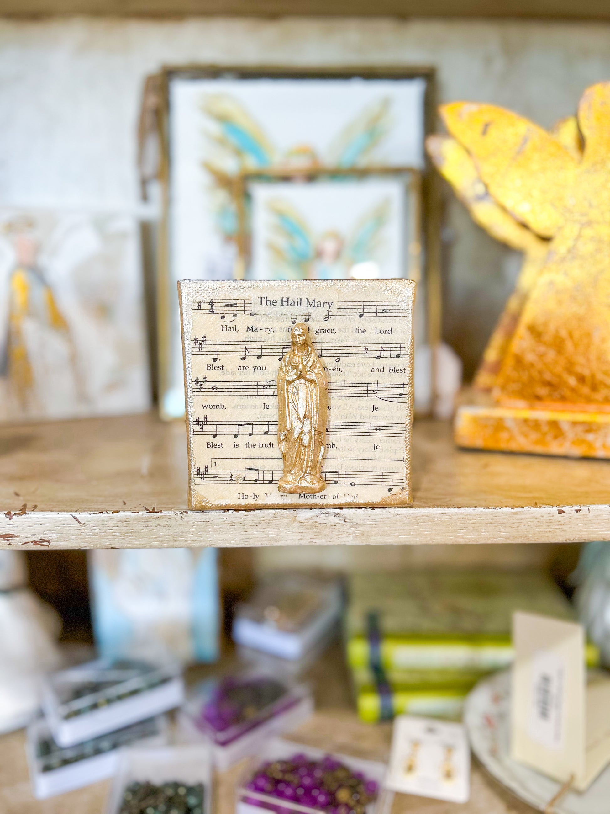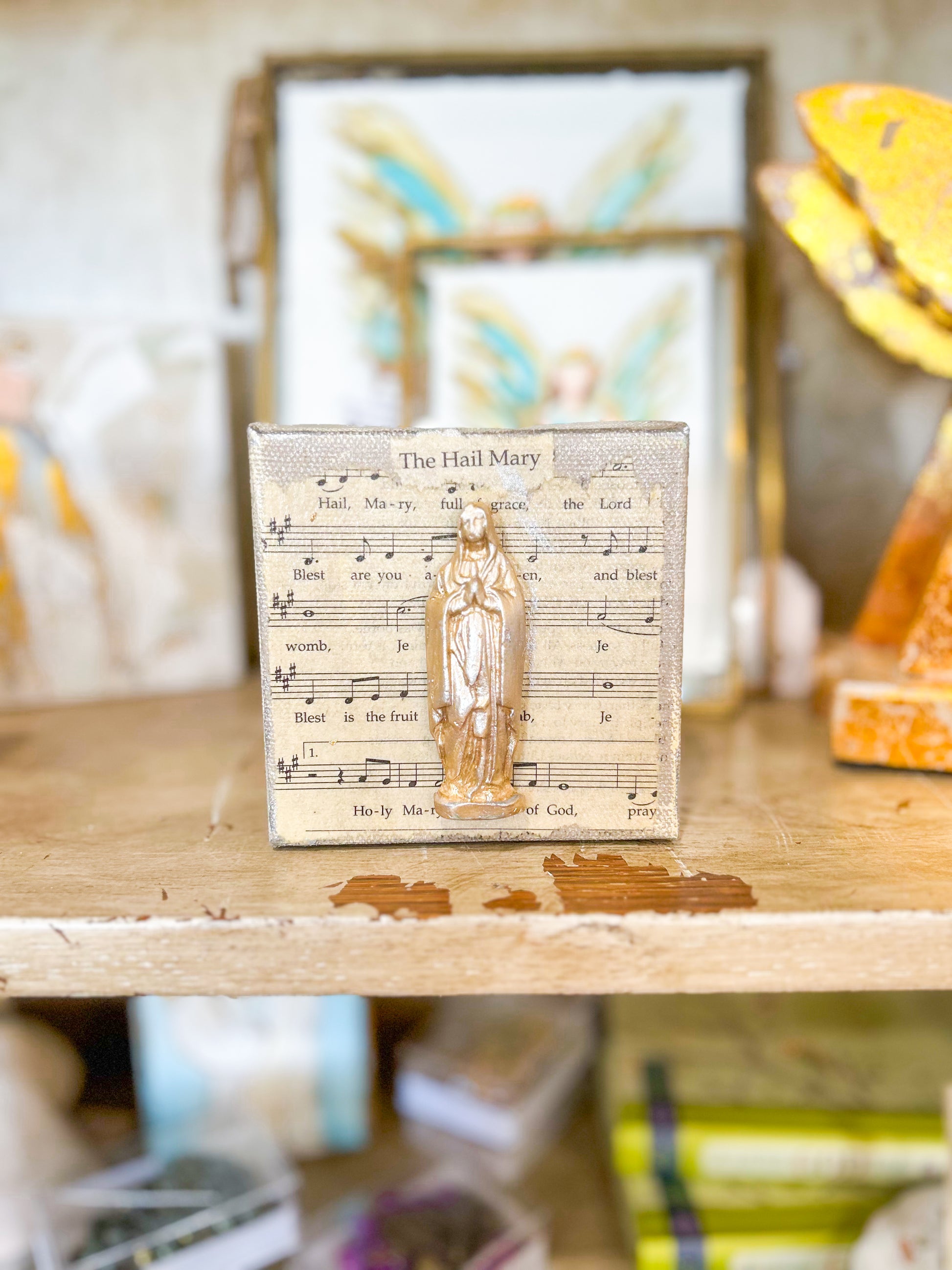 The Hail Mary Clay on Canvas blends timeless reverence with artisan craftsmanship. Featuring a delicately sculpted clay Mary affixed to a textured canvas, this piece offers a profound visual depth and spiritual presence. Its sophisticated design makes it an exquisite addition to any space seeking elegant devotional art with a modern touch.