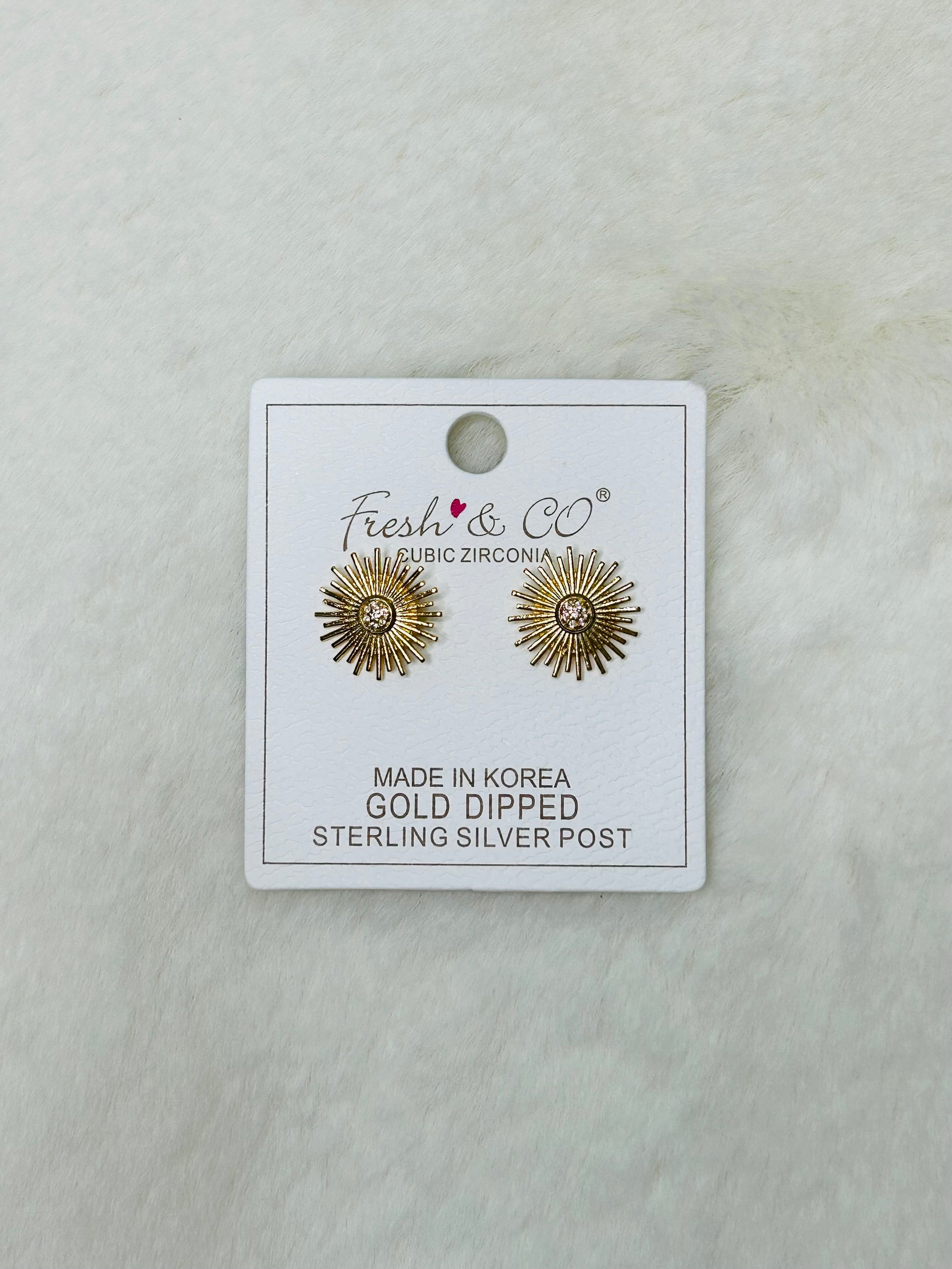 Cubic Zirconia, Gold Dipped, Sterling Silver Post