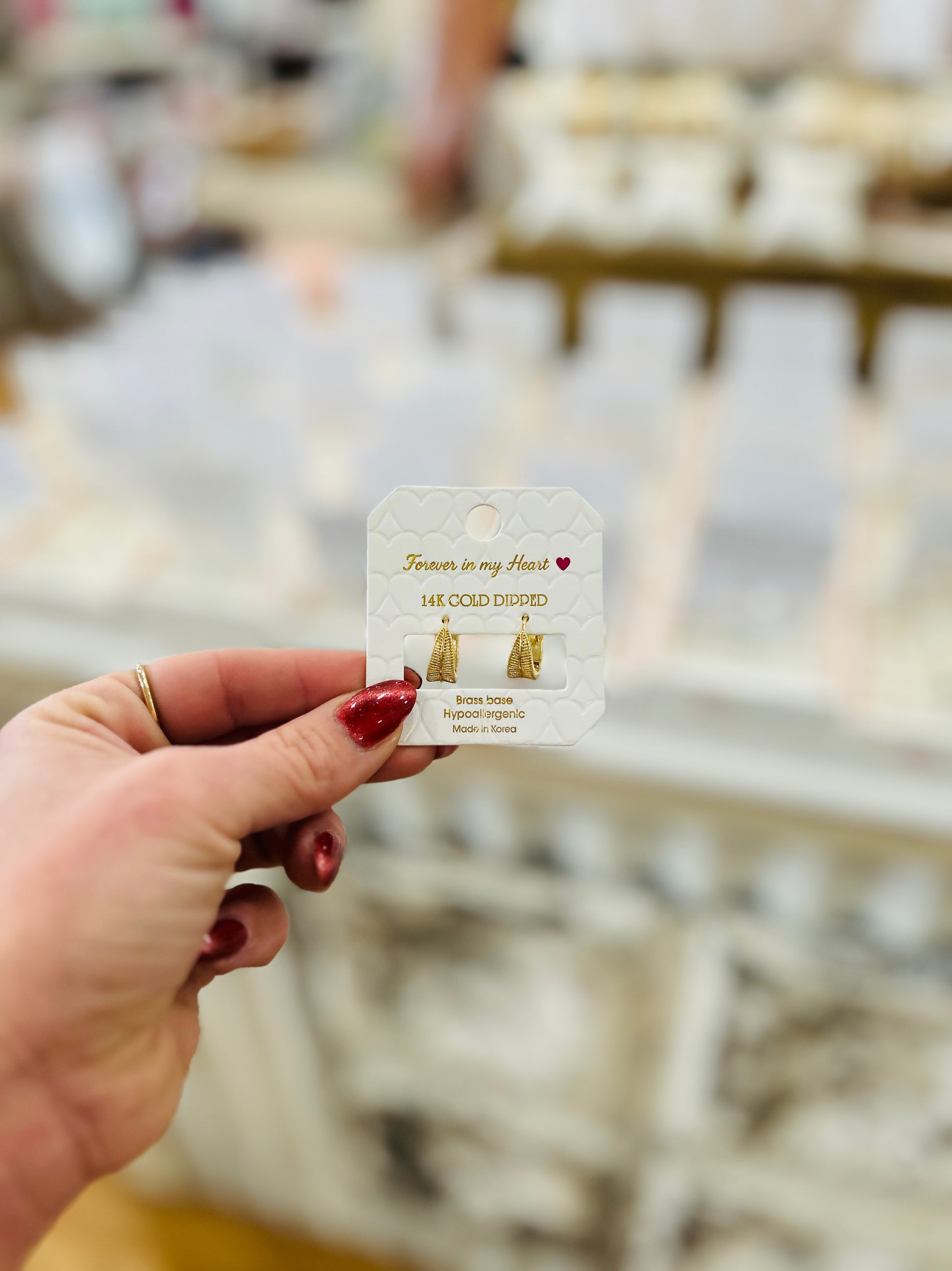 The Sloane Hoop – Textured Gold Medium Huggie Hoops bring effortless style and subtle detail to your everyday jewelry collection. Designed in a flattering medium-size huggie silhouette, these gold hoops feature a beautiful textured finish that adds depth and dimension while maintaining a classic, polished look. Lightweight and easy to wear, they are perfect for daily styling yet refined enough to elevate any outfit. A versatile staple, The Sloane Hoop transitions seamlessly from casual days to dressy evenings.