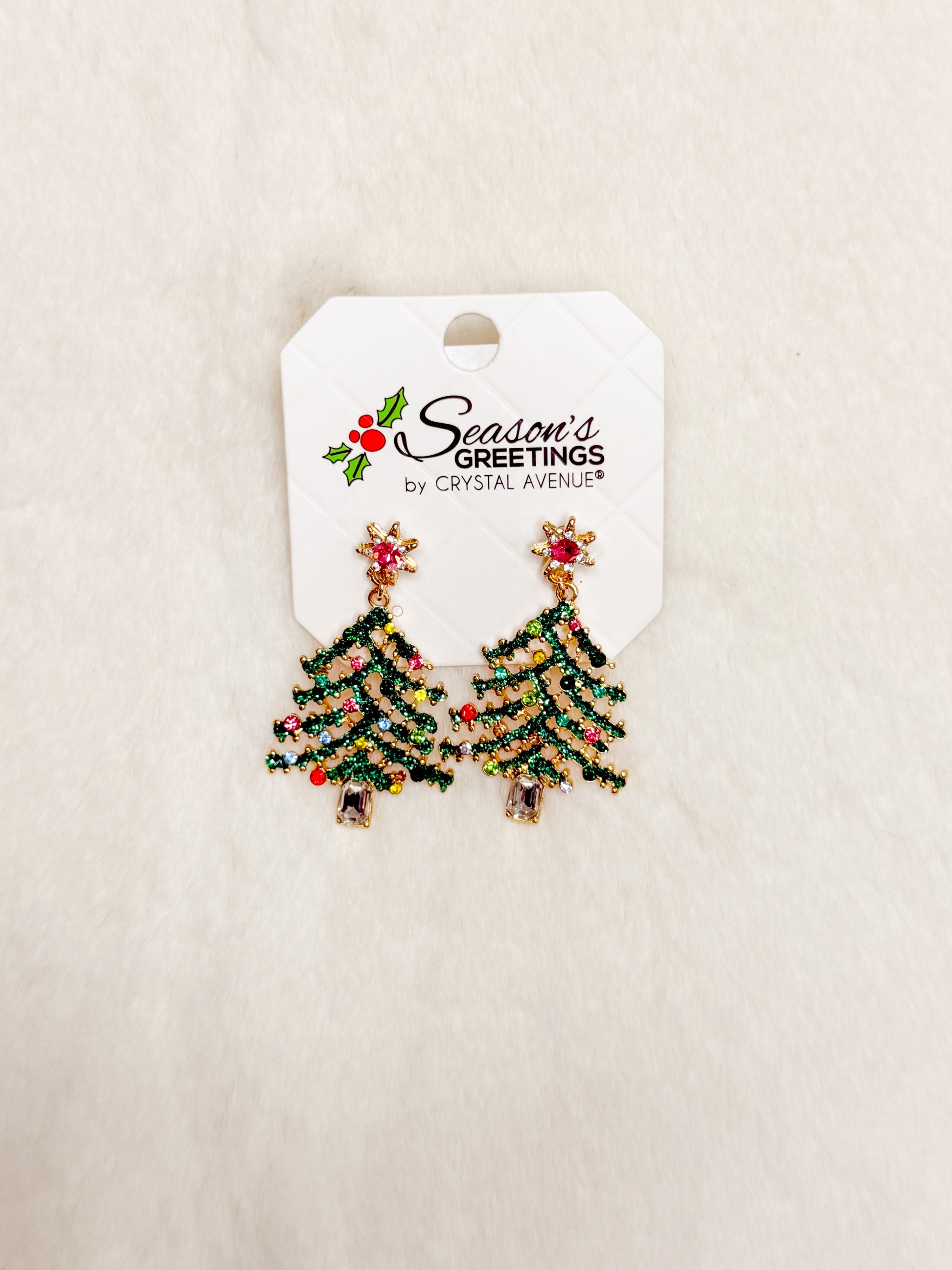 Tree Farm Glow Rhinestone Christmas Tree Earrings