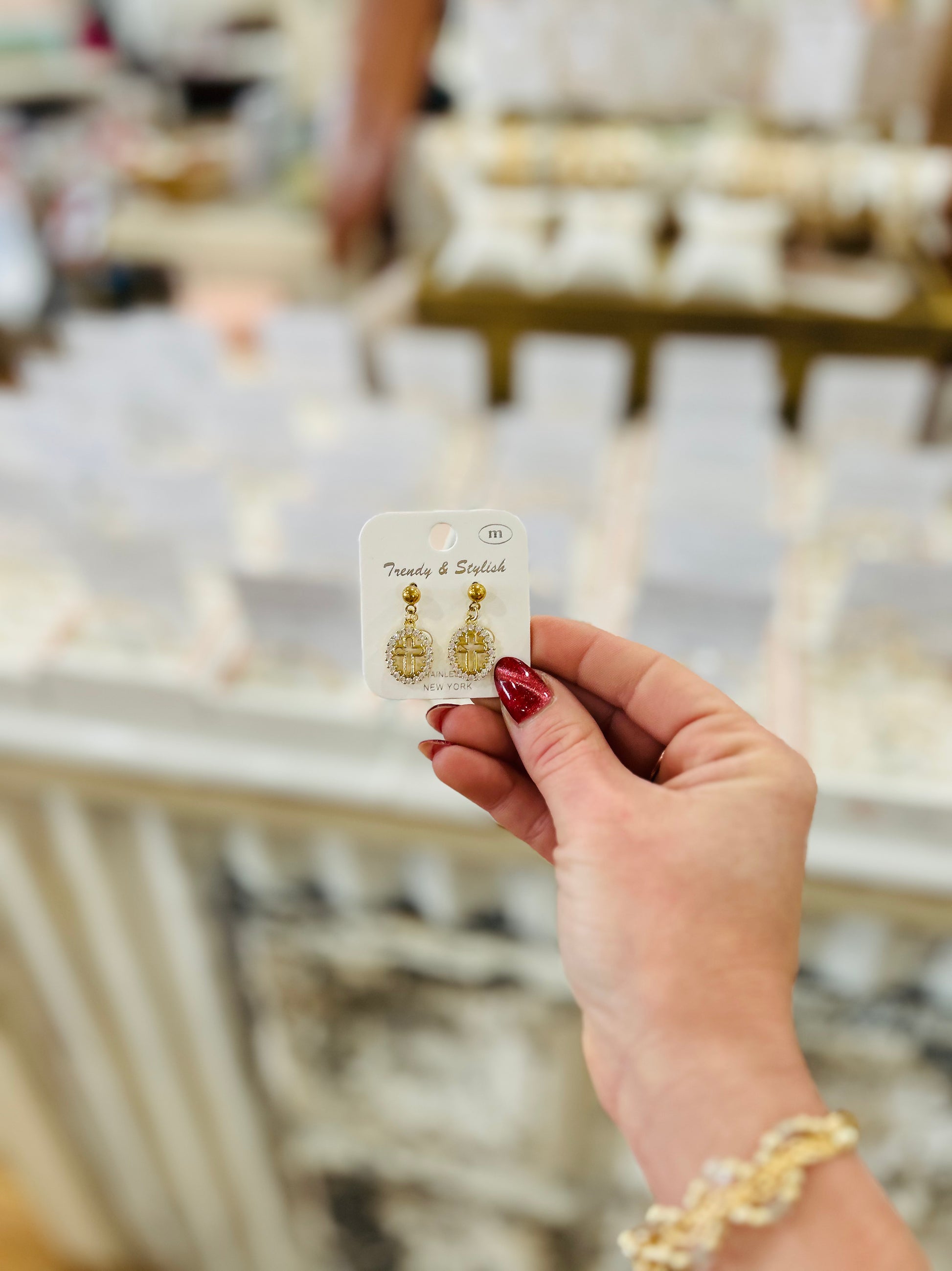 Trendy and Stylish Diamond Cross Gold Dangle Earrings