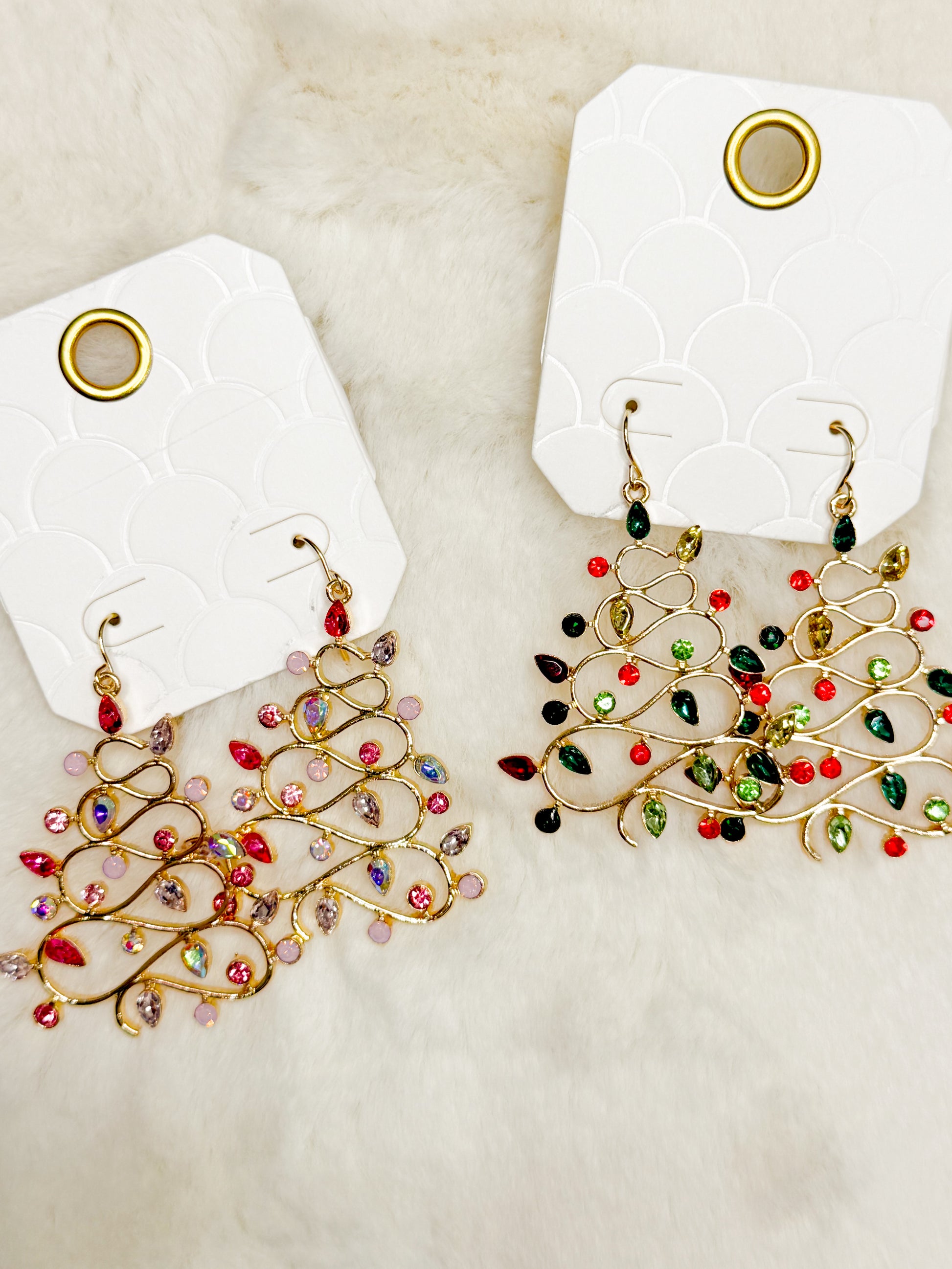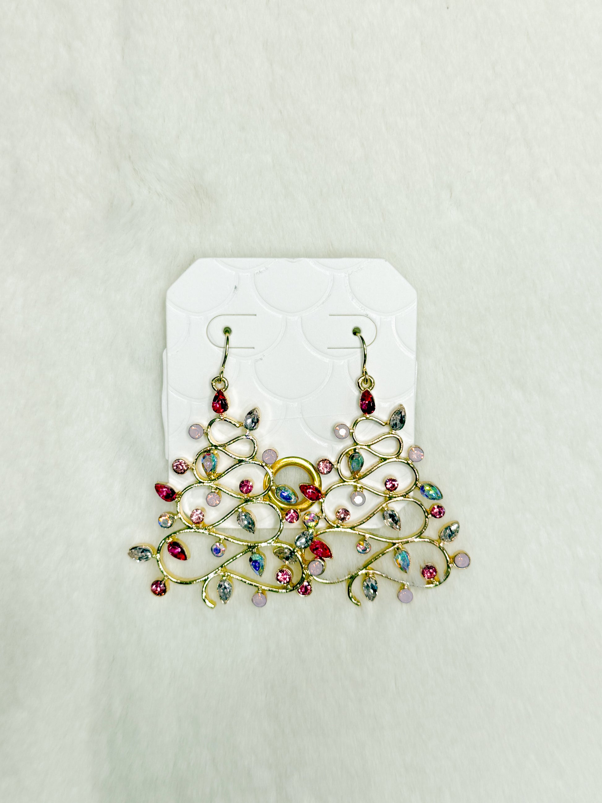 Trimmed & Twinkling Hanging Rhinestone Christmas Tree Earrings