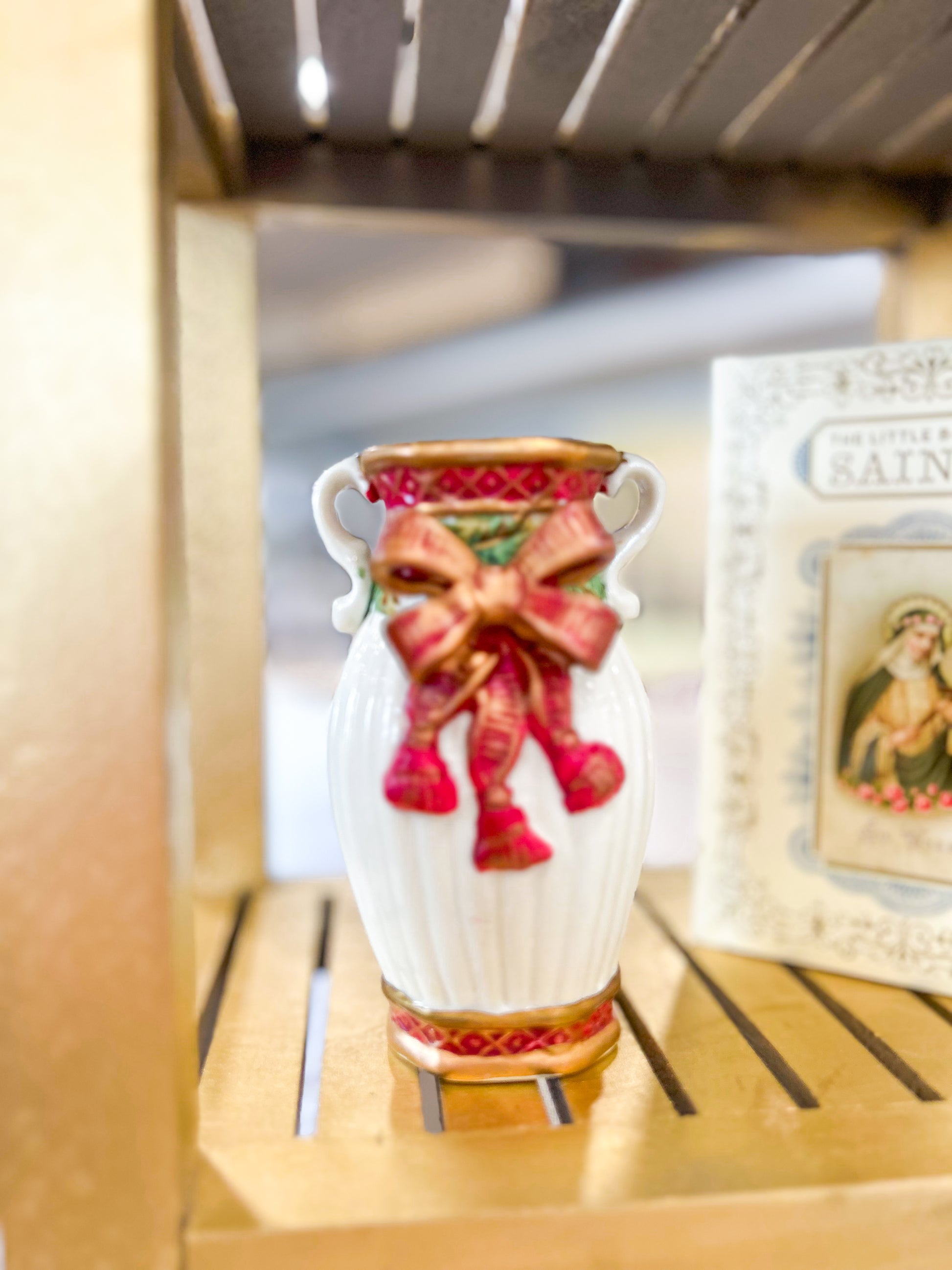 Elevate your holiday décor with the Vintage Christmas Bow Vase. Its timeless design, featuring a graceful bow motif, adds a refined touch to any festive setting. Perfect for showcasing seasonal florals or as a standalone accent, this vase brings classic elegance and subtle holiday charm to your home.