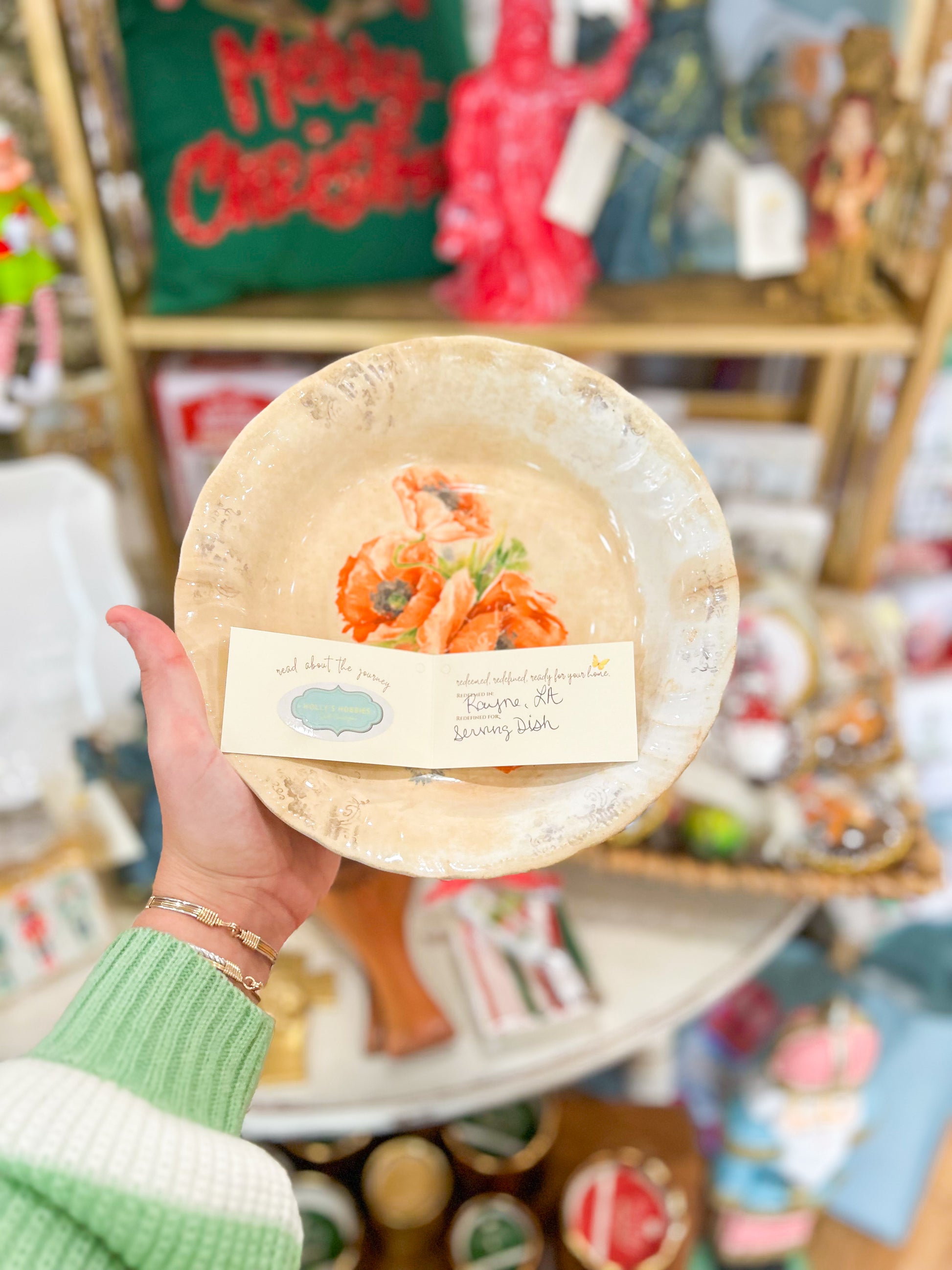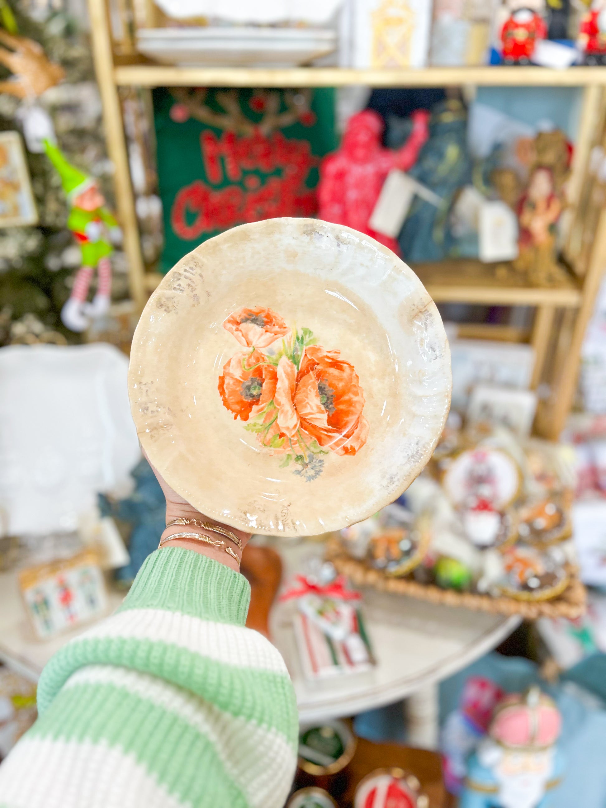 A stunning floral serving bowl from Harker, circa 1840, featuring delicate poppy designs. Both functional and collectible, it’s redefined for serving or display—bringing timeless heritage and Southern grace to your table.