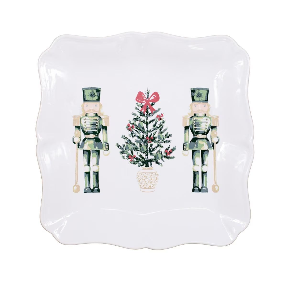 Elevate your holiday gatherings with this Watercolor Nutcracker Square Platter, featuring a delicate nutcracker design rendered in soft watercolor tones. Crafted to blend artistry with functionality, this elegant platter adds a festive yet refined touch to your table setting, perfect for serving appetizers, desserts, or holiday treats with style.