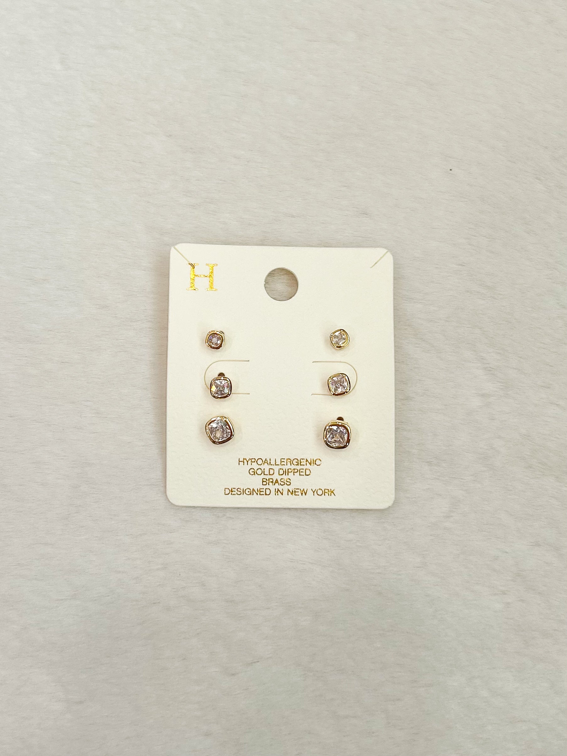 Sparkle in style with the Zella Gold Rhinestone Three Piece Earring Set! This versatile trio features stunning rhinestone accents on hypoallergenic, gold-dipped brass that's gentle on sensitive ears. Mix and match these beauties throughout your week—from casual days to special nights out. Each pair delivers that perfect glimmer without the guilt, making them ideal for everyday glamour or gifting to your favorite accessory lover.